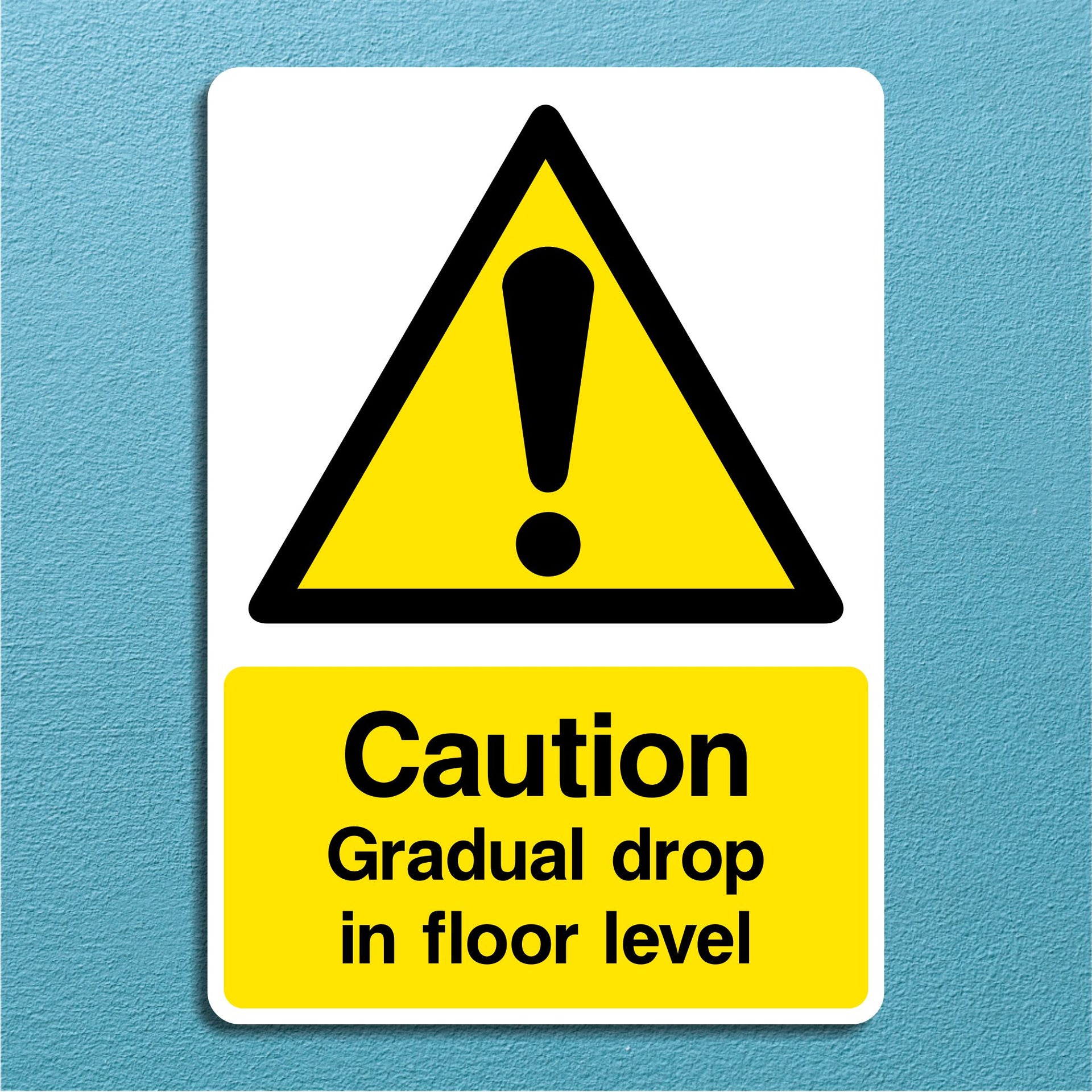Caution Gradual Drop in Floor Level Signs are used to warn people that the floor ahead slopes downward gradually, rather than having a sharp step or sudden drop. Caution Gradual Drop in Floor Level Signs are typically found in industrial settings, warehouses, farms, and other workplaces where floor level changes are part of the environment. Even gentle downward slopes can cause someone to lose balance, especially if they’re distracted, carrying something, or not expecting the change. All our safety signs are compliant with BS EN ISO 7010 where applicable.