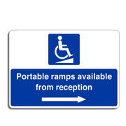 Portable Ramps Available From Reception Sign with a Right Pointing Directional Arrow