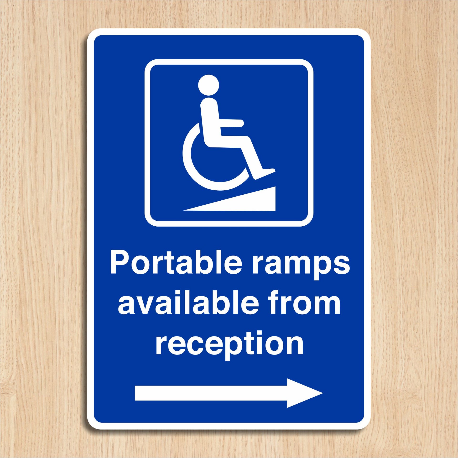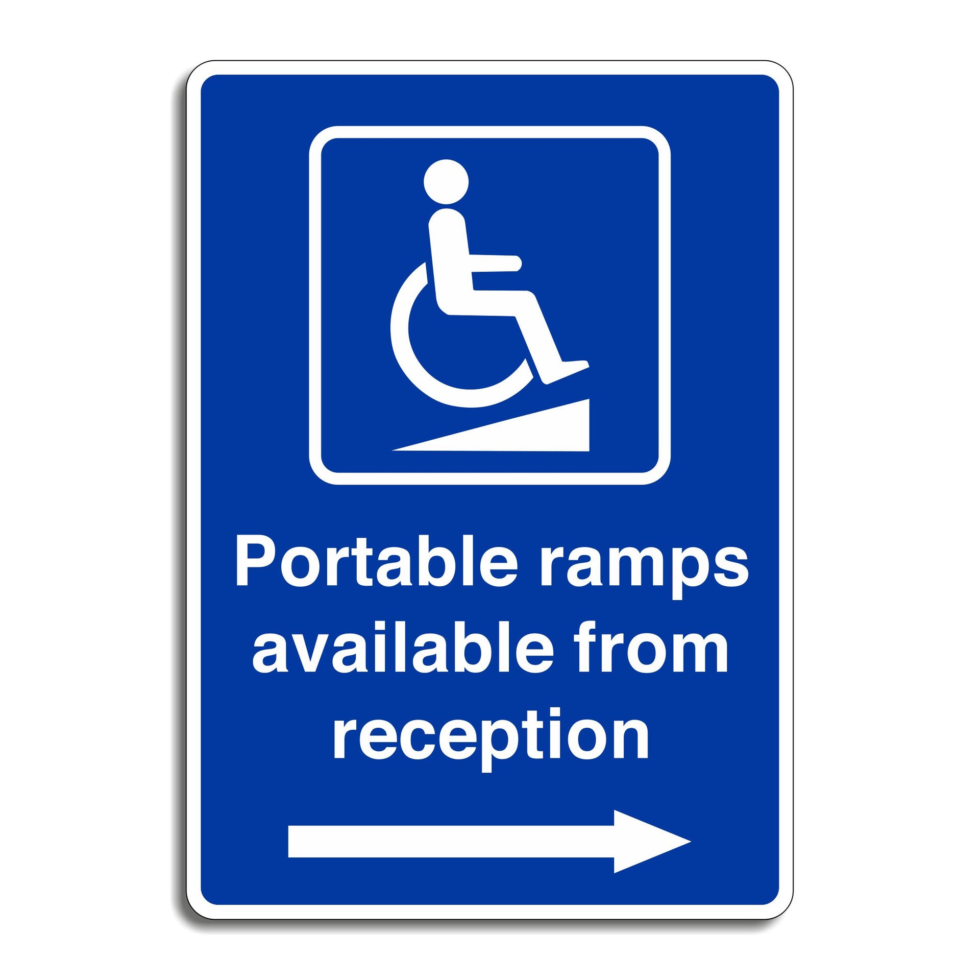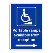 Portable Ramps Available From Reception Sign with a Right Pointing Directional Arrow