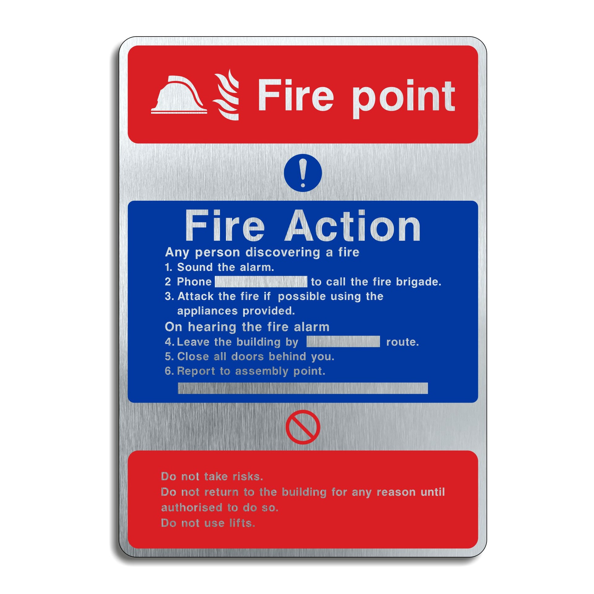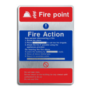 Fire Point Fire Action Signs are a vital safety sign used to indicate the location of fire-fighting equipment (known as a fire point) and to provide clear instructions on what to do in the event of a fire. It combines equipment identification with emergency action guidance, helping ensure a swift, coordinated, and safe response during a fire emergency. All our safety signs are compliant with BS EN ISO 7010 where applicable.