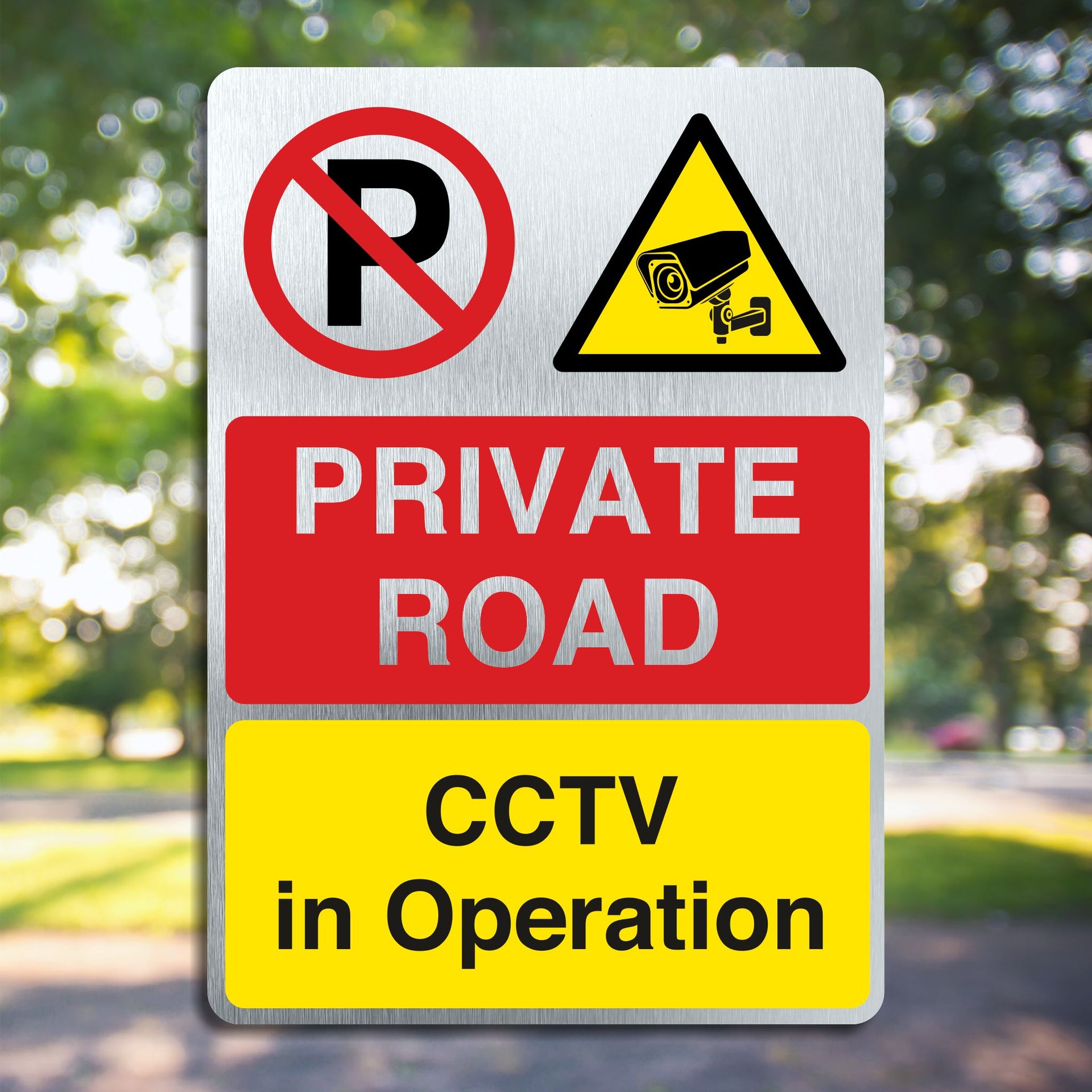 Brushed Aluminium Private Road CCTV In Operation Sign