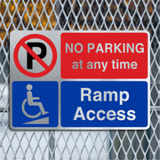 No Parking At Any Time Ramp Access Sign are used to ensure that areas providing ramp access remain clear and accessible at all times. These signs are essential for preventing vehicles from blocking ramps used by individuals with disabilities, parents with prams, or anyone needing a smooth, sloped entryway. All our safety signs are compliant with BS EN ISO 7010 where applicable.