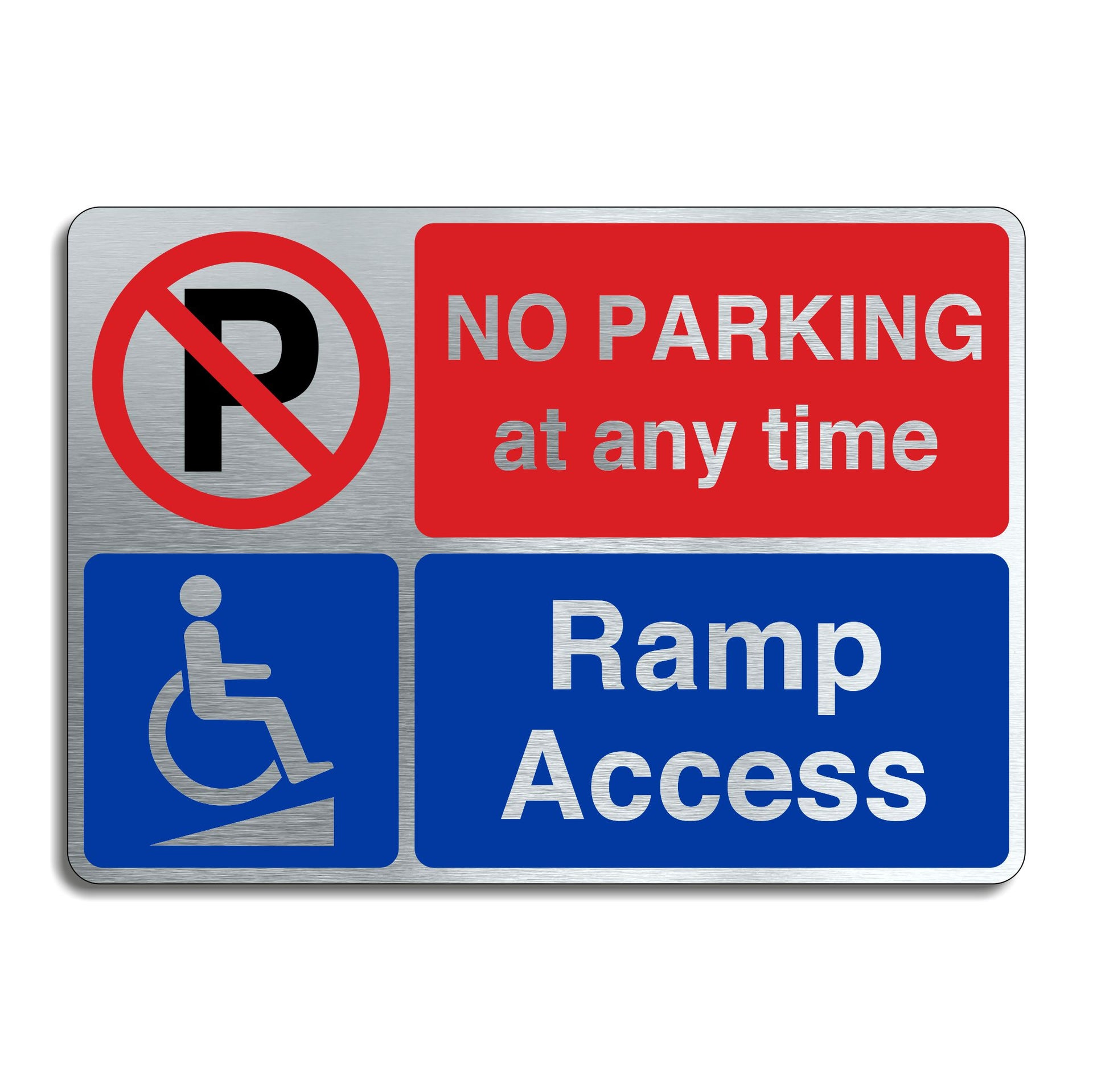 Brushed Aluminum No Parking At Any Time Ramp Access Sign