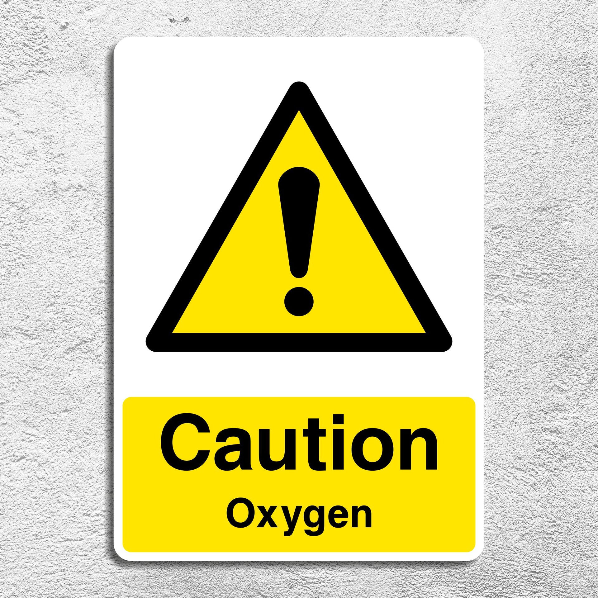 Caution Oxygen Signs are safety warnings used to indicate the presence of oxygen-enriched environments or areas where oxygen is being stored or used. While oxygen itself is not flammable, it greatly increases the risk and intensity of fire. They alert people that oxygen is present, which can cause materials to ignite more easily and burn more fiercely than in normal air. All our safety signs are compliant with BS EN ISO 7010 where applicable.