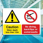 Caution Water Depth Less Than 1.5m No Diving Backflips Or Somersaults Sign