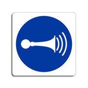Sound Horn Signs are safety signs used to instruct individuals to sound a horn or use an audible warning device in specific situations, primarily to alert others of potential hazards, facilitate safe movement, or signal particular actions. These signs are commonly found in areas where vehicles, forklift trucks, machinery, or equipment are in operation, especially in environments with high traffic or the presence of potential risks. All our safety signs are compliant with BS EN ISO 7010 where applicable.