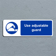 Use Adjustable Guard Signs are safety instructions that specifically remind workers to use adjustable guards on machinery or equipment when necessary. These guards are designed to be adjusted to fit different operational needs or accommodate varying material sizes while maintaining safety standards. All our safety signs are compliant with BS EN ISO 7010 where applicable.