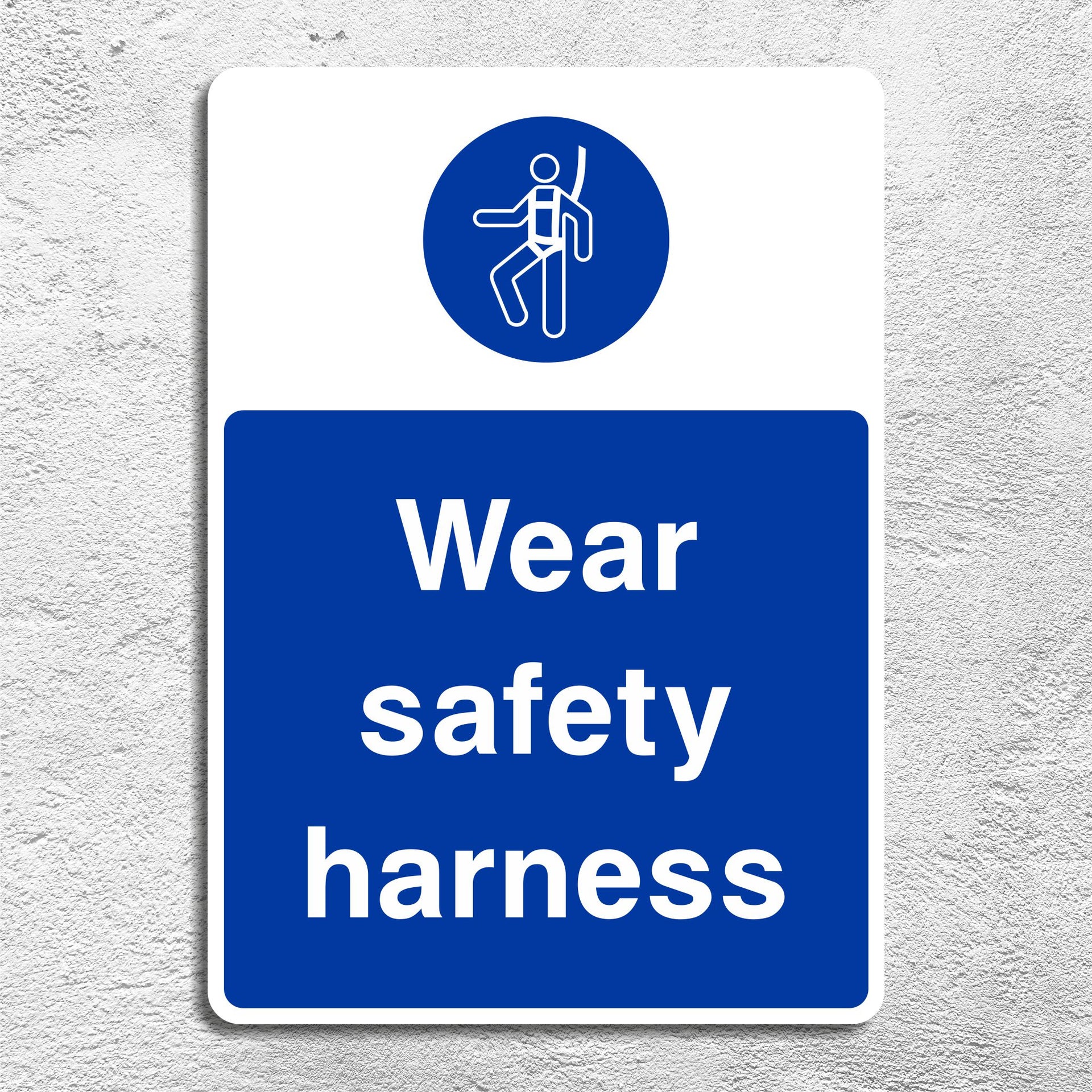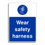 Wear Safety Harness Signs are crucial safety reminders in environments where workers are required to secure themselves with a safety harness to protect against falls from height. These signs are typically placed in areas where employees are working at elevated positions, such as construction sites, maintenance platforms, scaffolding, or rooftops. The goal of these signs is to ensure that workers are using proper fall protection measures to reduce the risk of serious injury or death. All our safety signs are compliant with BS EN ISO 7010 where applicable.