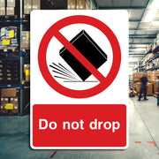 Do Not Drop Signs are used to warn handlers that the item or package must be handled with care and should not be dropped under any circumstances. These signs are commonly found on fragile goods, sensitive equipment, or hazardous materials. These signs help to protect delicate, breakable, or precision items from being cracked, smashed, or rendered unusable and avoid potential hazards, such as spills, chemical leaks, or injuries, that could occur if certain items are dropped. All our safety signs are compliant with BS EN ISO 7010 where applicable.