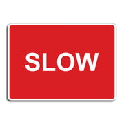 Slow Signs are traffic control signs used to alert road users, both drivers and sometimes pedestrians, to reduce their speed due to potential hazards or changes in road conditions. They warn of upcoming dangers such as sharp curves, school zones, pedestrian crossings, construction zones, or areas with limited visibility. By encouraging drivers to reduce speed, "Slow" signs help decrease the likelihood and severity of collisions. All our safety signs are compliant with BS EN ISO 7010 where applicable.