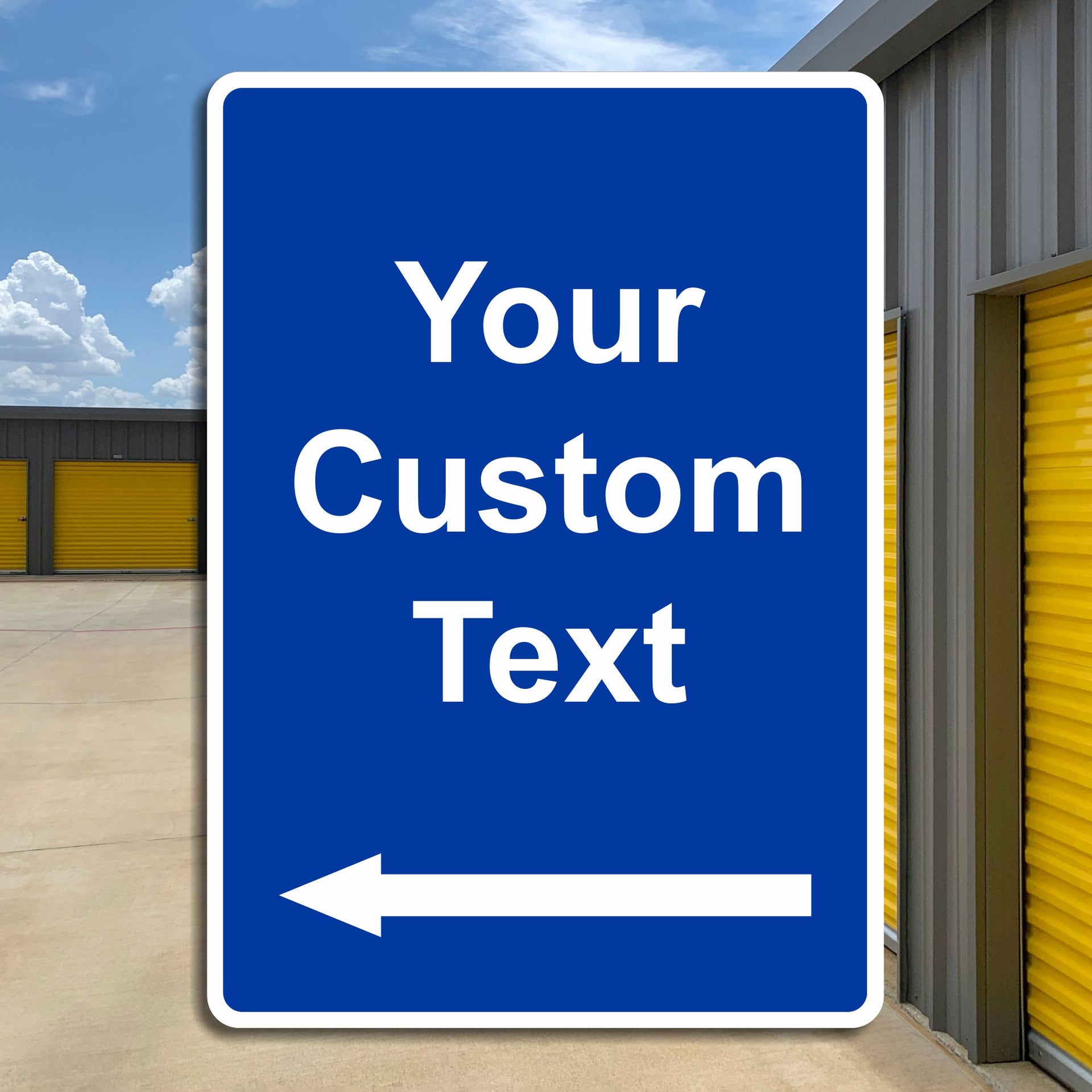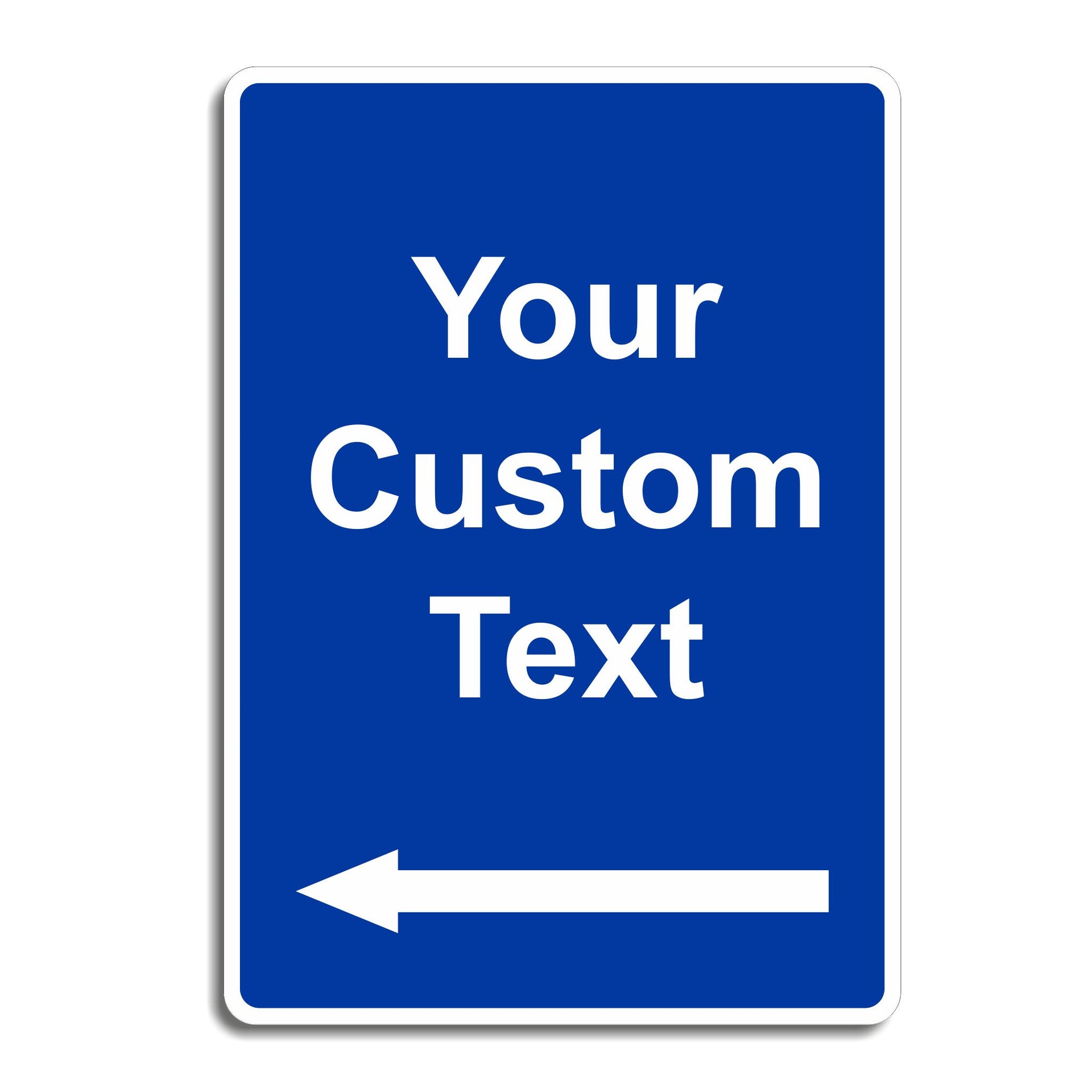 Custom Text Blue Safety Sign with Arrow for Workplace, School or Industrial Locations