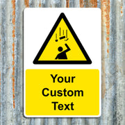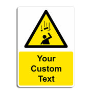 Do you need a custom beware falling objects warning sign but can't find exactly what you want? We offer a range of custom safety signs available in PVC Vinyl, Rigid Plastic and Aluminium Composite perfect for workplace safety signage. Use our Custom Sign templates to create your perfect sign for just about any location or message! Choose your size, material and then tell us your text to create the perfect sign. Yellow backgrounds with black text like this custom sign blank are ideal for any custom made warning signs, danger signs, hazard signs and beware signs that you would like to create ready to display in any location.