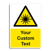 Looking for a custom laser beam safety sign but can't find exactly what you want? We offer a range of custom safety signs available in PVC Vinyl, Rigid Plastic and Aluminium Composite perfect for workplace safety signage. Use our Custom Sign templates to create your perfect sign for just about any location or message! Choose your size, material and then tell us your text to create the perfect sign. Yellow backgrounds with black text like this custom sign blank are ideal for any custom made warning signs, danger signs, hazard signs and beware signs that you would like to create ready to display in any location.
