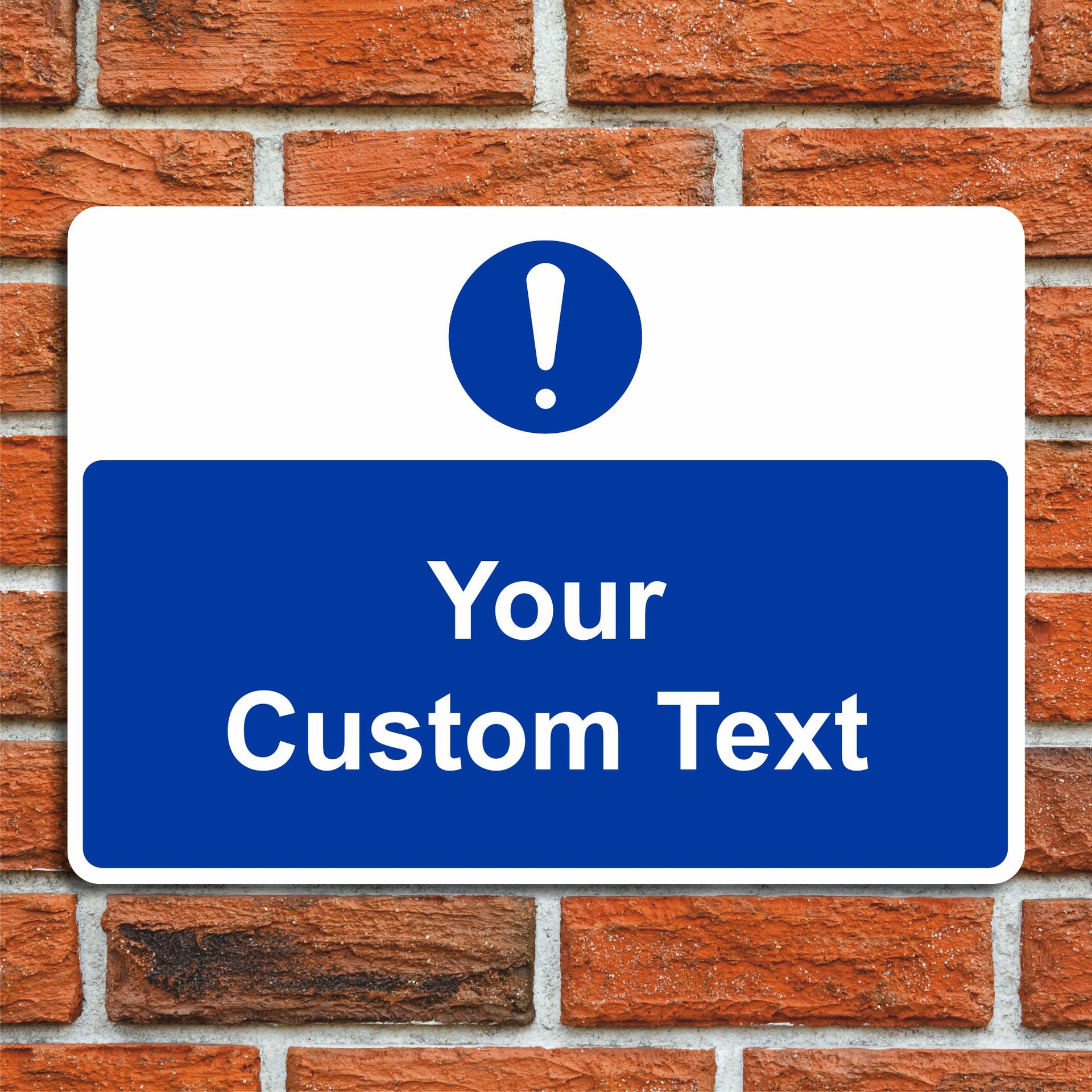 Do you need a new sign but can't find exactly what you want? We offer a range of custom safety signs available in PVC Vinyl, Rigid Plastic and Aluminium Composite perfect for workplace safety signage. Use our Custom Sign templates to create your perfect sign for just about any location or message! Choose your size, material and then tell us your text to create the perfect sign. Blue backgrounds with white text like this custom sign blank are ideal for any custom mandatory signs that you would like to create ready to display in any location.