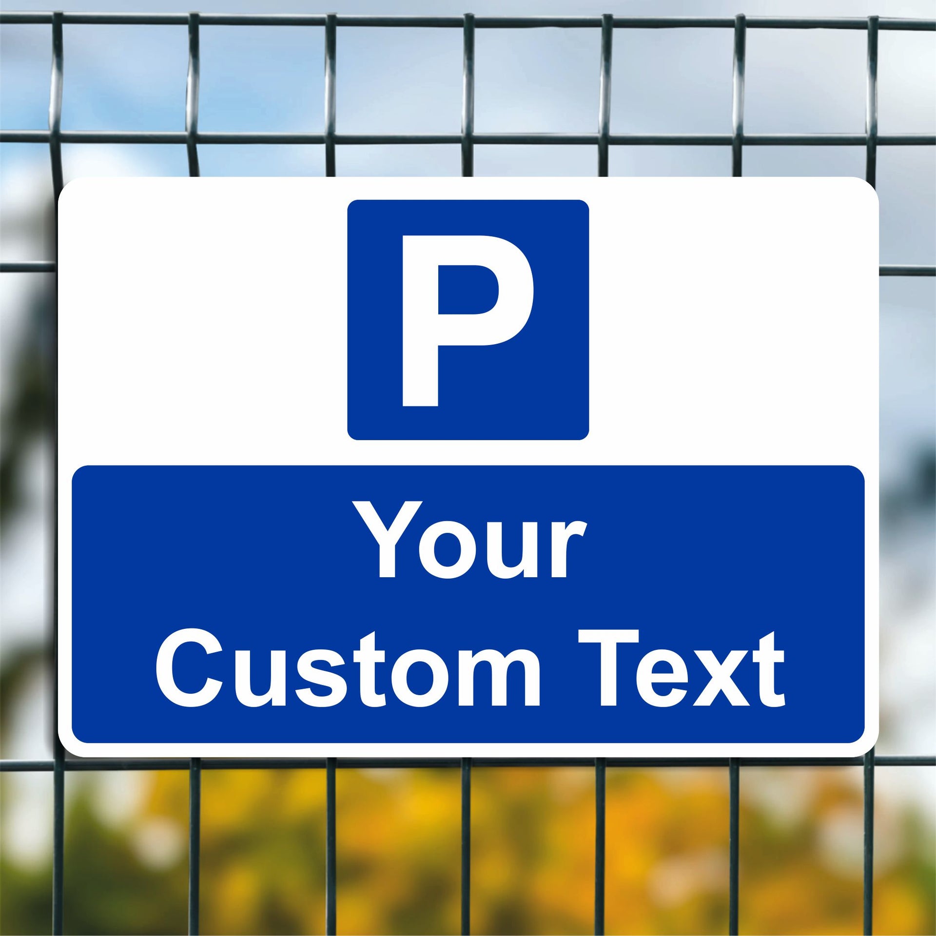Do you need a new parking sign but can't find exactly what you want? We offer a range of custom safety signs available in PVC Vinyl, Rigid Plastic and Aluminium Composite perfect for workplace safety signage. Use our Custom Sign templates to create your perfect sign for just about any location or message! Choose your size, material and then tell us your text to create the perfect sign. Blue backgrounds with white text like this custom sign blank are ideal for any custom parking signs that you would like to create ready to display in any location.