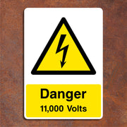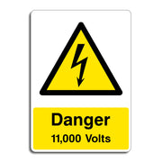 Danger 11,000 Volts Signs are used to warn people of the presence of extremely high-voltage electricity and to prevent serious injury or death due to electrical shock or arc flash incidents. Strongly deters untrained or unauthorized individuals from entering or tampering with high-voltage areas. All our safety signs are compliant with BS EN ISO 7010 where applicable.