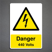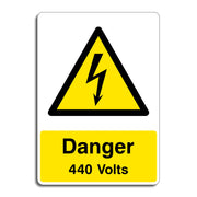 Danger 440 Volts Signs are used to warn people about the presence of high-voltage electricity and to help prevent serious injuries or fatalities caused by electric shock. These signs clearly indicate that electrical equipment or wiring operates at 440 volts, which is potentially lethal if touched or mishandled. All our safety signs are compliant with BS EN ISO 7010 where applicable.