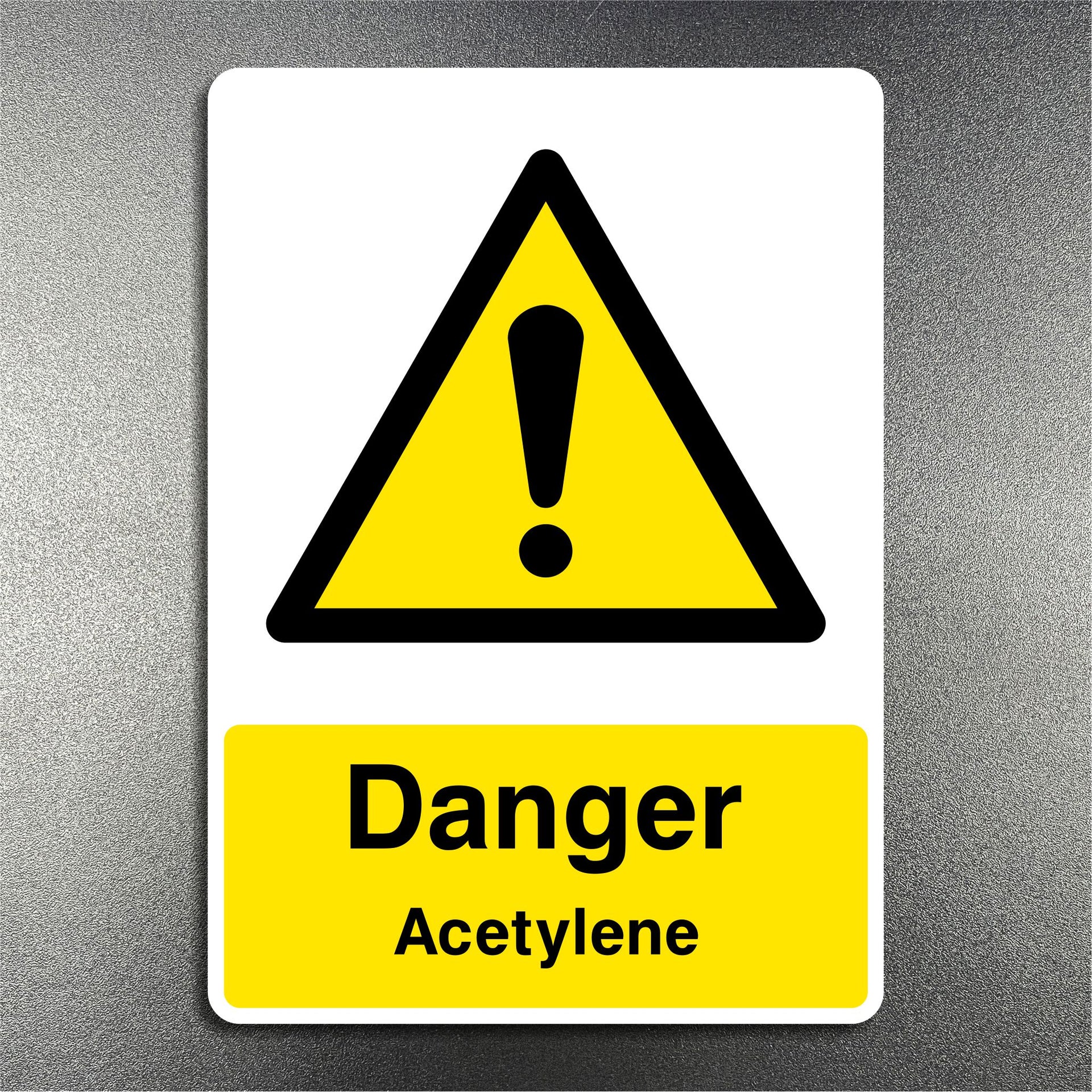 Danger Acetylene Signs are safety warnings used to alert individuals to the presence of acetylene gas, a highly flammable and potentially explosive substance commonly used in welding, cutting, and other industrial processes. They help to promote the use of personal protective equipment (PPE). All our safety signs are compliant with BS EN ISO 7010 where applicable.