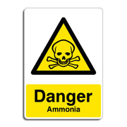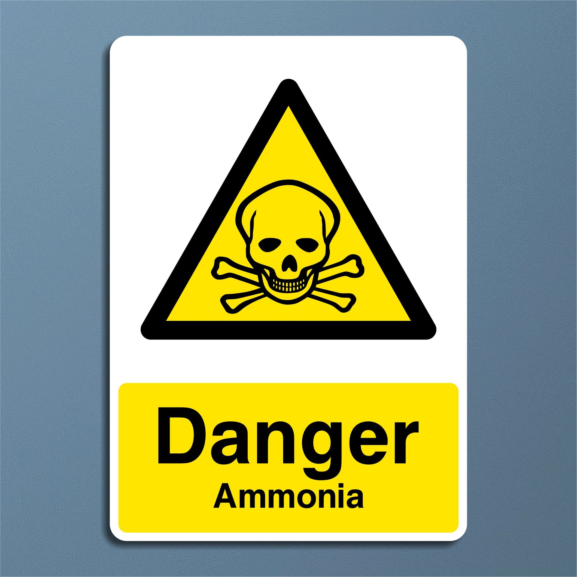 Danger Ammonia Signs are safety warnings used to alert individuals to the presence of ammonia, a hazardous chemical that can pose serious health and safety risks if not handled properly. They encourage the use of personal protective equipment (PPE) like gloves, safety goggles, face shields, and protective clothing when handling or near corrosive materials. All our safety signs are compliant with BS EN ISO 7010 where applicable.