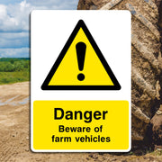 Danger Beware of Farm Vehicles signs warn people that farm vehicles like tractors, trucks, or harvesters may be moving in and out of the area, often slowly and unexpectedly. These signs are important because they: Alert drivers and pedestrians to watch out for large, slow, or turning farm equipment. Help prevent collisions and other accidents, especially in busy or low-visibility areas. Danger beware of farm vehicle signs remind everyone that farm vehicles might not move like regular traffic they can be wider, slower, and harder to stop. Meet safety regulations that require warnings in agricultural or mixed-use areas. Protect farmers and equipment operators by giving them a safer working environment. All our safety signs are compliant with BS EN ISO 7010 where applicable.