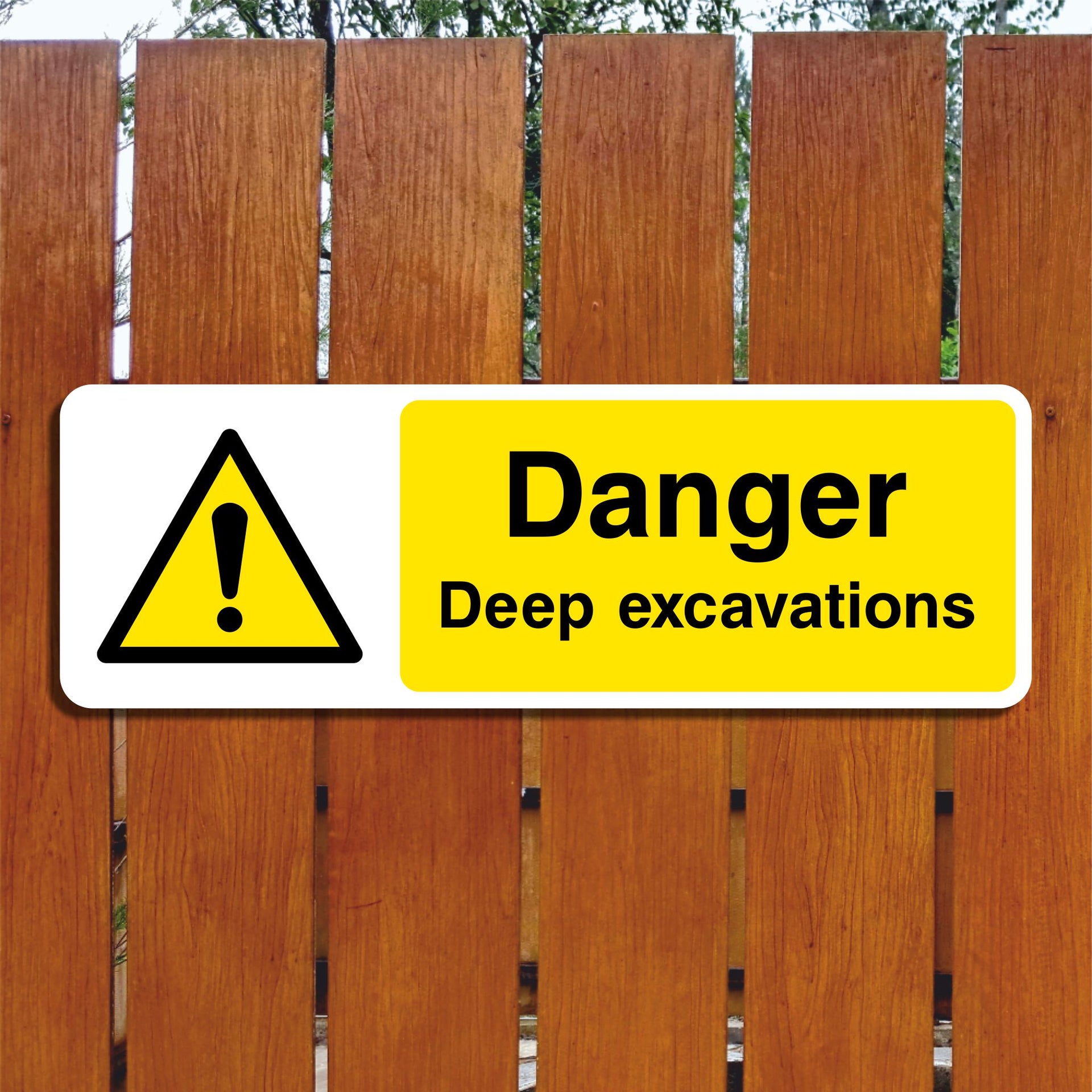 Danger Deep Excavations Signs are used to warn people about the presence of deep holes, trenches, or pits on a construction or work site. These signs play a critical role in preventing falls, injuries, and equipment accidents by clearly marking areas where the ground has been excavated and poses a serious hazard. All our safety signs are compliant with BS EN ISO 7010 where applicable.