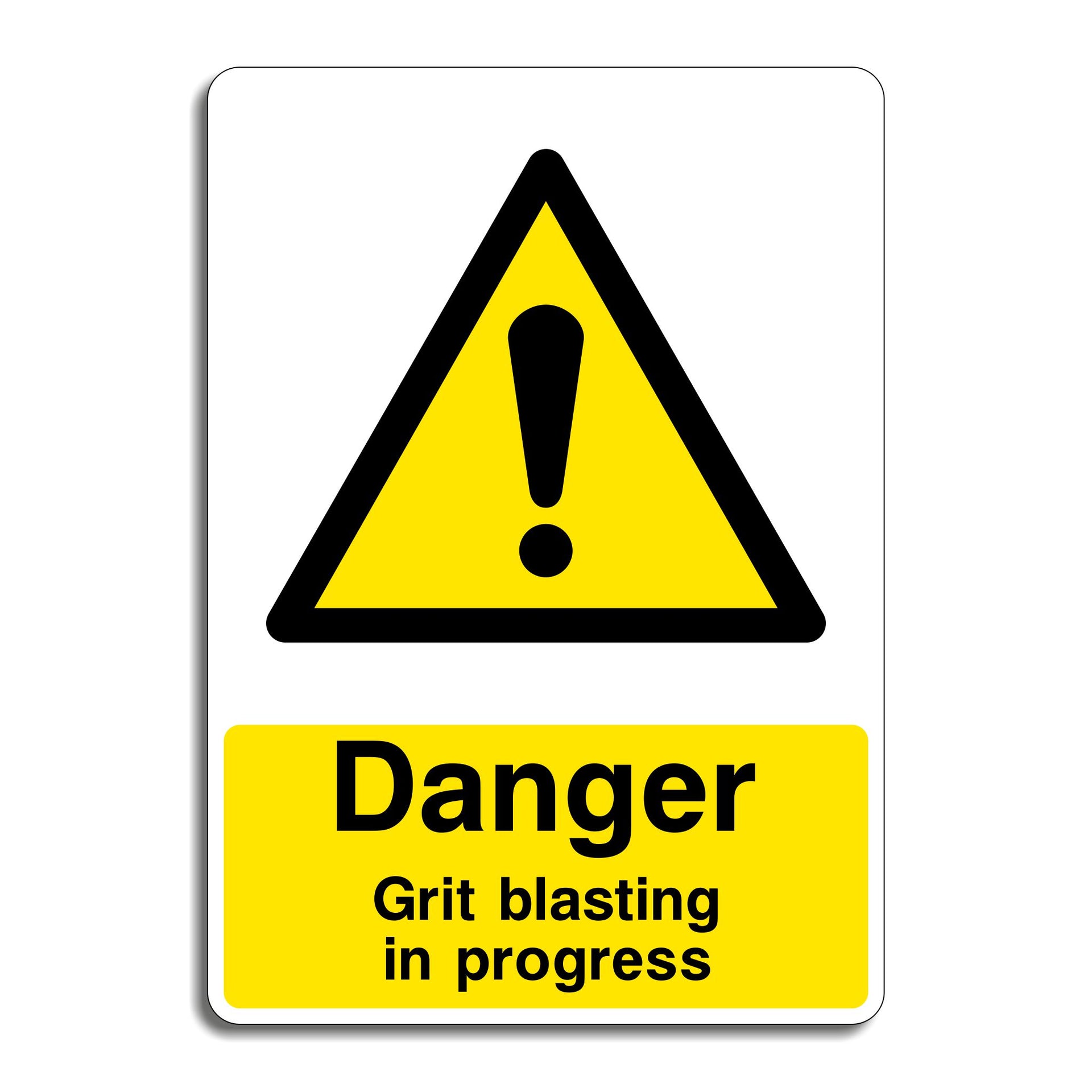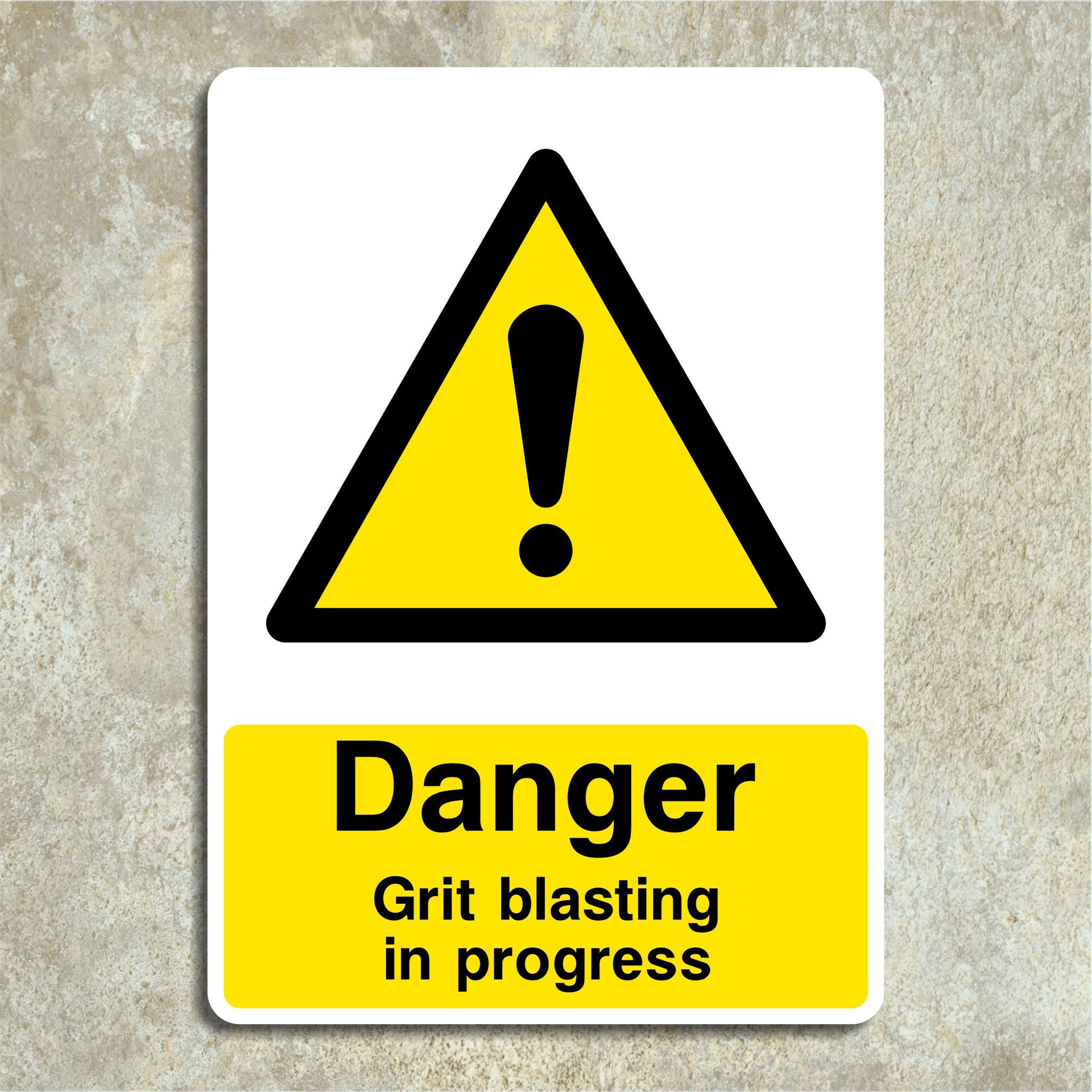 Danger Grit Blasting In Progress Signs are used to warn individuals that abrasive blasting is actively taking place in the area, a process that involves propelling abrasive materials at high speed to clean or prepare surfaces. This activity generates hazardous dust, flying particles, and loud noise, which can cause serious health risks such as respiratory issues, eye injuries, and skin damage. All our safety signs are compliant with BS EN ISO 7010 where applicable.