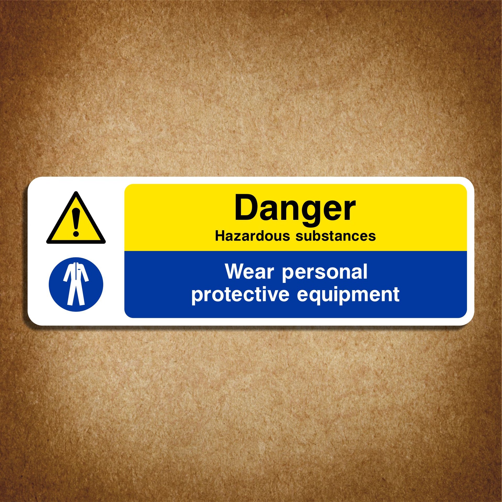Danger Hazardous Substances Wear Personal Protective Equipment Signs are used to warn people about the presence of dangerous materials and to instruct them to wear appropriate safety gear (PPE) before entering or working in the area. These signs help to prevent injuries or exposure to harmful chemicals or substances and protect health and safety by ensuring the use of gear like gloves, goggles, masks, or protective clothing. All our safety signs are compliant with BS EN ISO 7010 where applicable.