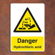 Danger Hydrochloric Acid Signs are specialized safety warnings that indicate the presence of hydrochloric acid (HCl), a highly corrosive and hazardous chemical. They alert people that hydrochloric acid is present, which can cause severe chemical burns, respiratory irritation, and damage to surfaces and remind workers and visitors to use appropriate personal protective equipment (PPE) such as gloves, goggles, and respirators when near or handling hydrochloric acid. All our safety signs are compliant with BS EN ISO 7010 where applicable.