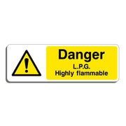 Danger L.P.G Highly Flammable Signs are safety warnings used to indicate the presence of Liquefied Petroleum Gas (LPG), a highly flammable and potentially explosive gas commonly used as fuel in industrial, commercial, and residential settings. They help to promote the use of personal protective equipment (PPE). All our safety signs are compliant with BS EN ISO 7010 where applicable.