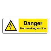 Danger Men Working On Line Signs are used to warn others, especially drivers or equipment operators, that workers are actively working on or near live electrical or communication lines, and to help prevent accidents, injuries, or fatalities. They warn vehicle operators to slow down, avoid the area, or proceed with extreme caution. All our safety signs are compliant with BS EN ISO 7010 where applicable.