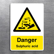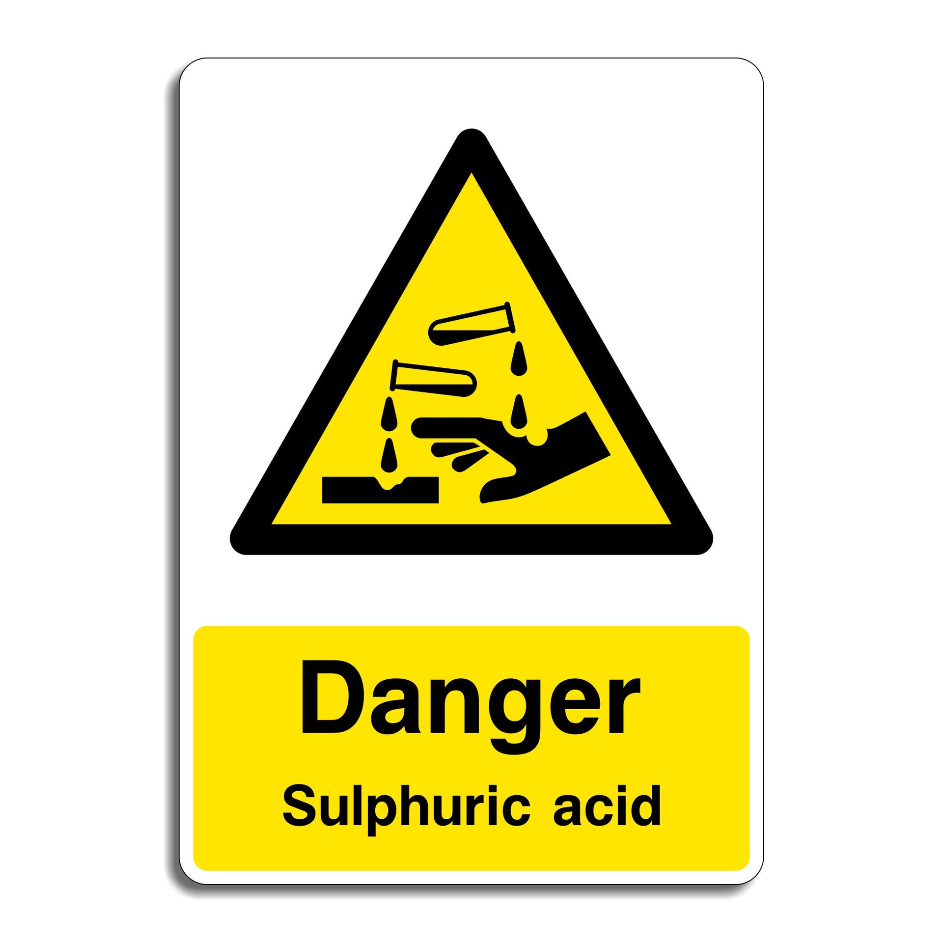 Danger Sulphuric Acid Signs are safety warnings used to alert individuals to the presence of sulphuric acid (H₂SO₄) a highly corrosive, toxic, and potentially dangerous chemical. They encourage the use of personal protective equipment (PPE) like gloves, safety goggles, face shields, and protective clothing when handling or near corrosive materials. All our safety signs are compliant with BS EN ISO 7010 where applicable.