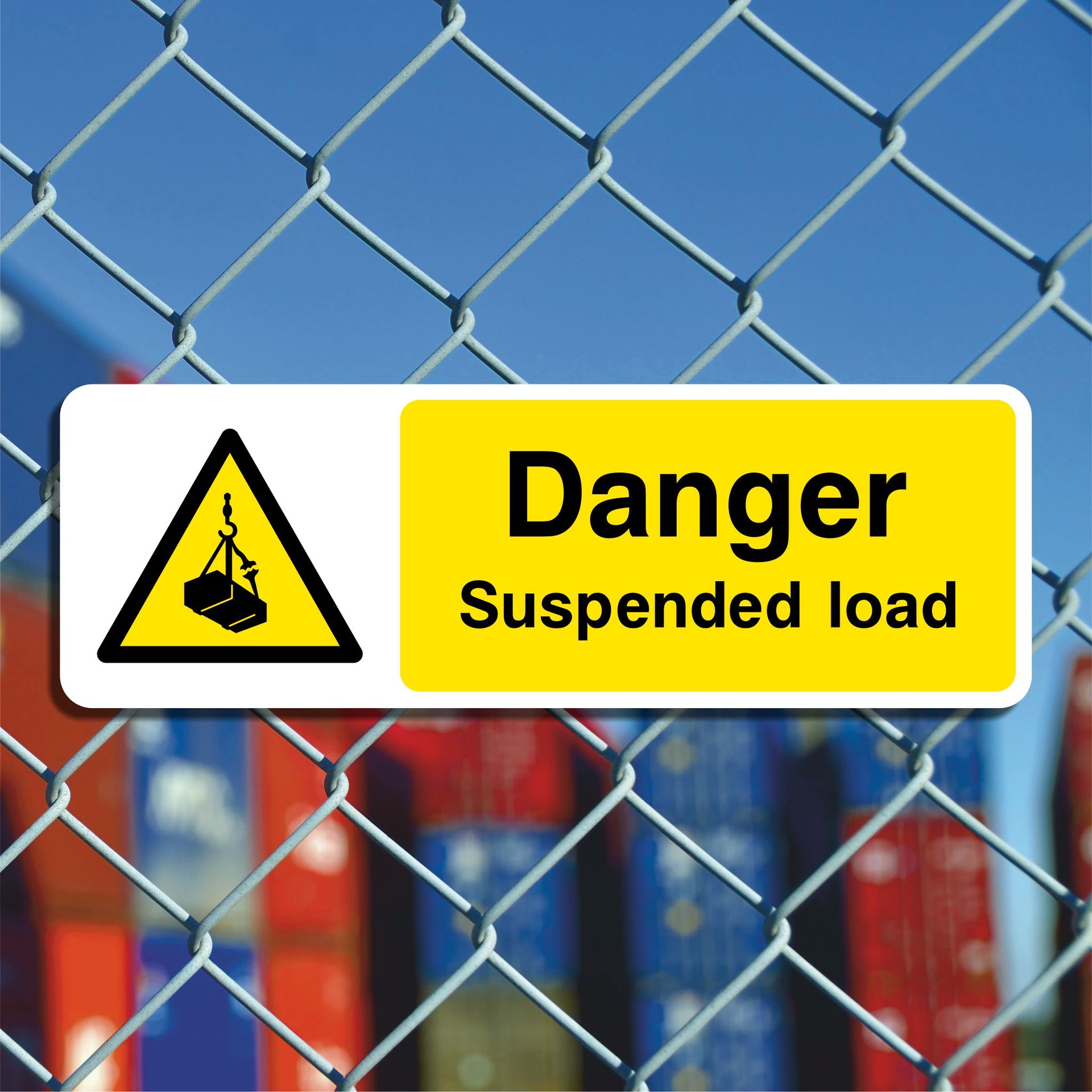 Danger Suspended Load Signs are used to warn people that a heavy object is being lifted or held overhead by cranes, hoists, or other lifting equipment, and that entering the area poses a serious risk of injury or death. These signs are commonly displayed in construction sites, factories, warehouses, shipyards, and industrial lifting zones. All our safety signs are compliant with BS EN ISO 7010 where applicable.