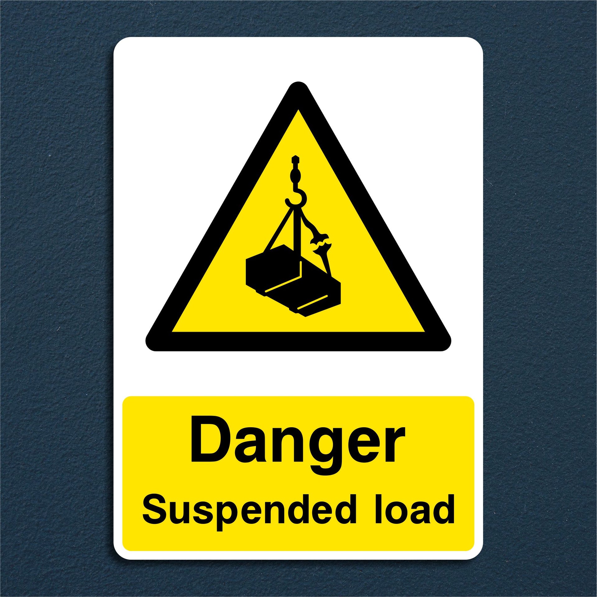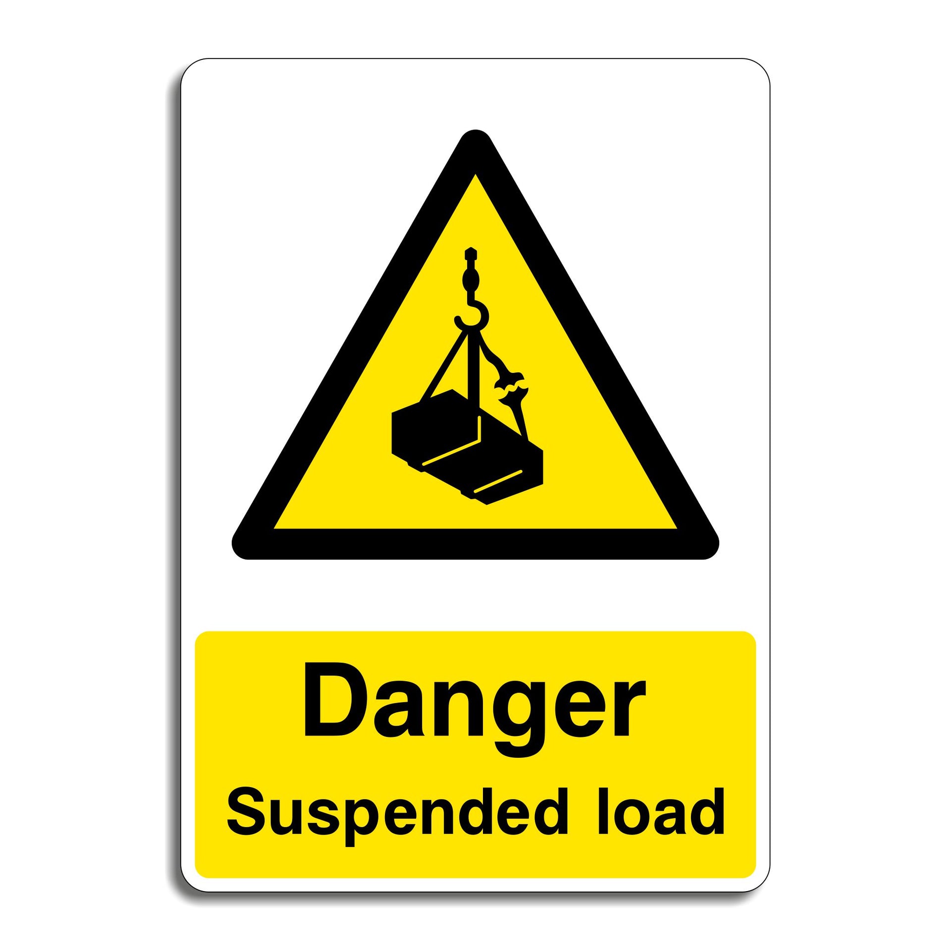 Danger Suspended Load Signs are used to warn people that a heavy object is being lifted or held overhead by cranes, hoists, or other lifting equipment, and that entering the area poses a serious risk of injury or death. These signs are commonly displayed in construction sites, factories, warehouses, shipyards, and industrial lifting zones. All our safety signs are compliant with BS EN ISO 7010 where applicable.