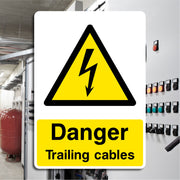 Danger Trailing Cables Signs are used to warn people that electrical cables are lying across walkways, work areas, or floors, posing a risk of tripping, electric shock, or equipment damage. They reduce the risk of electric shock, especially if cables are damaged, exposed, or in wet conditions. All our safety signs are compliant with BS EN ISO 7010 where applicable.