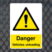 Danger Vehicles Unloading Signs are used to warn people that vehicles in the area are actively unloading goods, equipment, or materials, which can pose serious safety risks. These signs are commonly placed in loading bays, warehouses, construction sites, delivery zones, and industrial areas. All our safety signs are compliant with BS EN ISO 7010 where applicable.