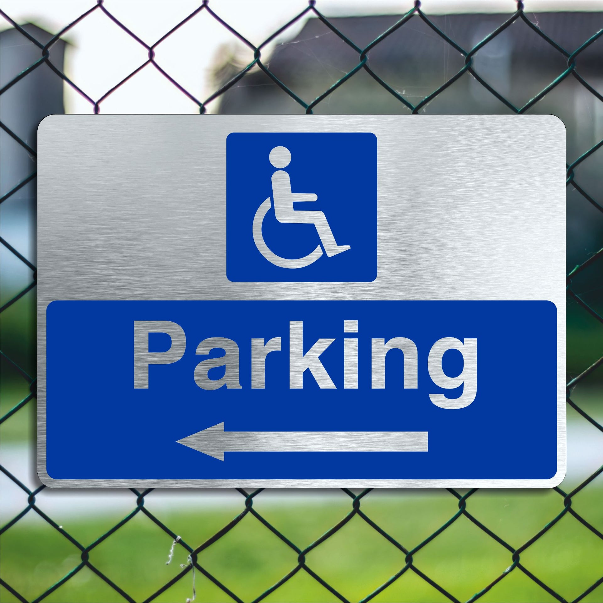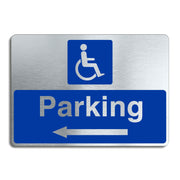 Disabled Parking Sign with a Left Pointing Directional Arrow Brushed Silver Aluminum Finish