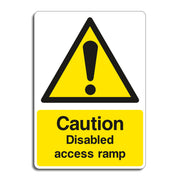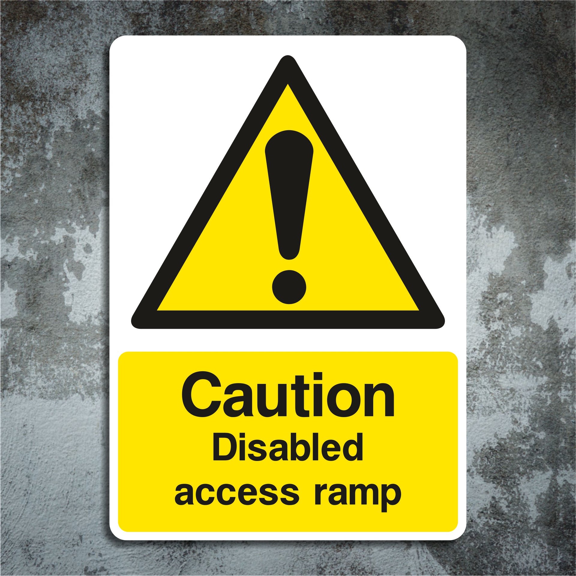 Caution Disabled Access Ramp Signs serve to alert people that there is a ramp ahead specifically designed for use by individuals with disabilities, including those using wheelchairs, mobility scooters, walkers, or other assistive devices. Caution Disabled Access Ramp Signs are placed near entrances, walkways, or transitions between surfaces where a ramp provides accessible entry or exit. Ramps create a gradual change in elevation that may not be immediately noticeable. The sign alerts pedestrians and equipment users to proceed carefully. All our safety signs are compliant with BS EN ISO 7010 where applicable.