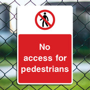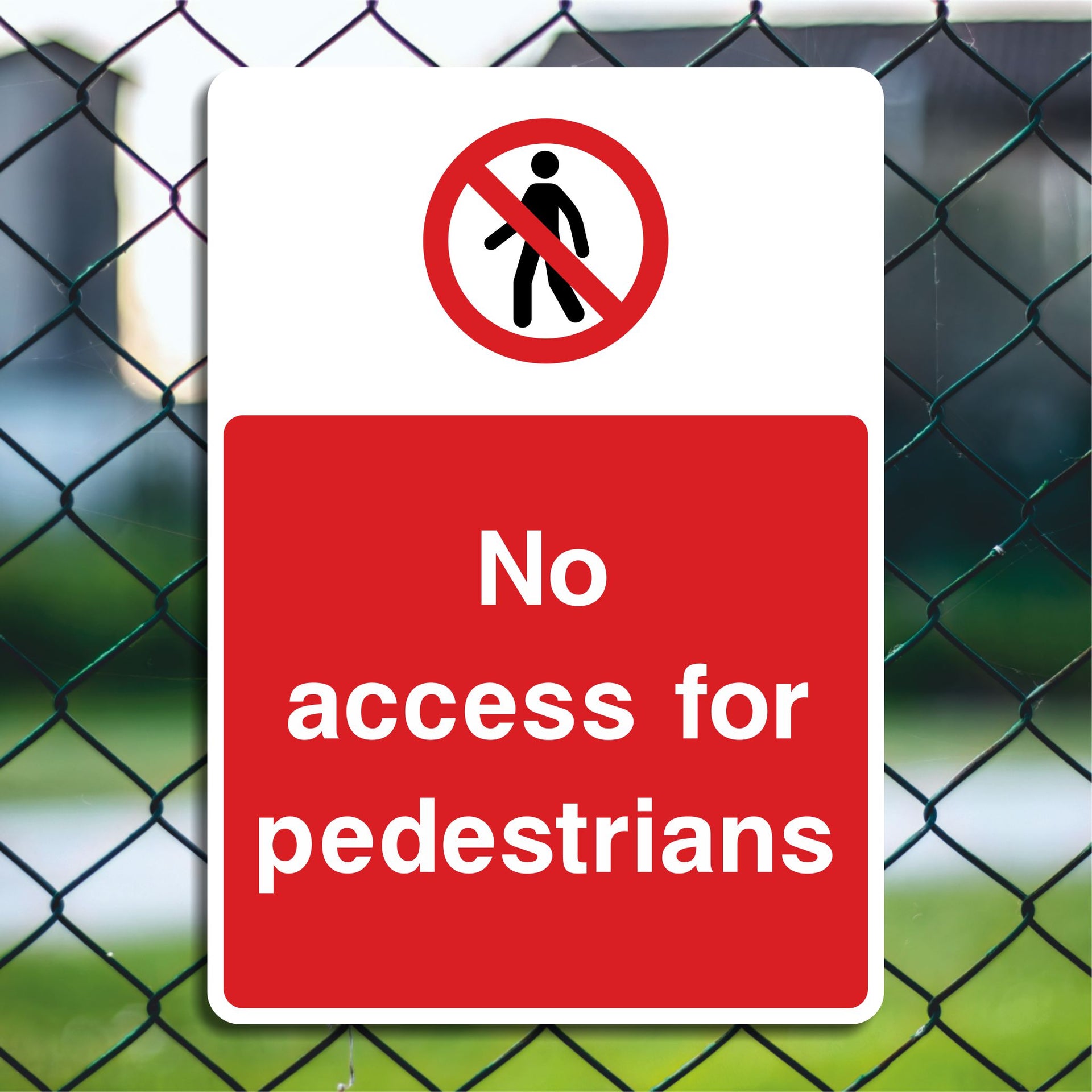 No Access for Pedestrians Signs are used to clearly indicate that pedestrians are not allowed to enter a specific area, typically due to safety, operational, or security concerns. They prevent people from entering hazardous zones such as construction sites, loading bays, or areas with moving vehicles or machinery. These signs help direct foot traffic to designated pedestrian pathways, ensuring safer movement within industrial, commercial, or restricted environments. All our safety signs are compliant with BS EN ISO 7010 where applicable.