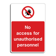 No Access for Unauthorised Personnel Signs are used to clearly indicate that only individuals with proper permission or credentials may enter a specific area. They help prevent untrained or unqualified individuals from entering areas that may contain hazardous equipment, substances, or conditions. These signs restrict access to secure or sensitive zones, such as data centers, control rooms, or private offices, helping prevent theft, vandalism, or data breaches. All our safety signs are compliant with BS EN ISO 7010 where applicable.