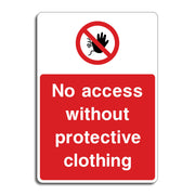 No Access Without Protective Clothing Signs are used to require that specific personal protective equipment (PPE) be worn before entering a designated area. They help prevent injuries by making sure individuals are properly protected from hazards such as chemicals, heat, machinery, or biological risks. Many workplaces are legally required to mandate PPE in hazardous zones. These signs support compliance with occupational health and safety laws. All our safety signs are compliant with BS EN ISO 7010 where applicable.