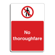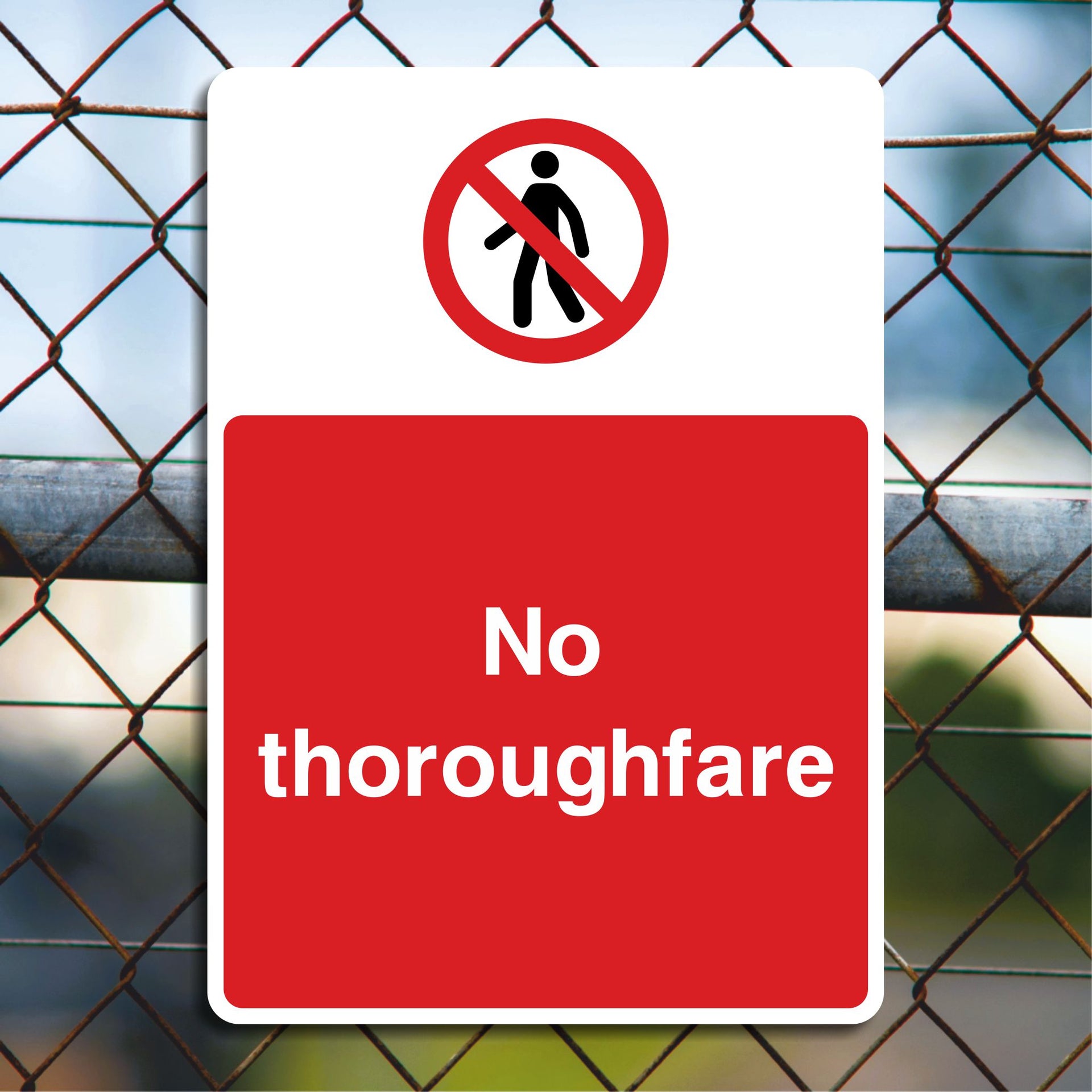 No Thoroughfare Signs are used to indicate that a route or passage is not open for public use or general access, and should not be used as a shortcut or transit path.  They prevent people from entering areas that are private, restricted, or not intended for through traffic, such as service routes, work zones, or secure premises. By keeping pedestrians or vehicles out of potentially hazardous or controlled areas, the signs help avoid accidents and injuries. All our safety signs are compliant with BS EN ISO 7010 where applicable.