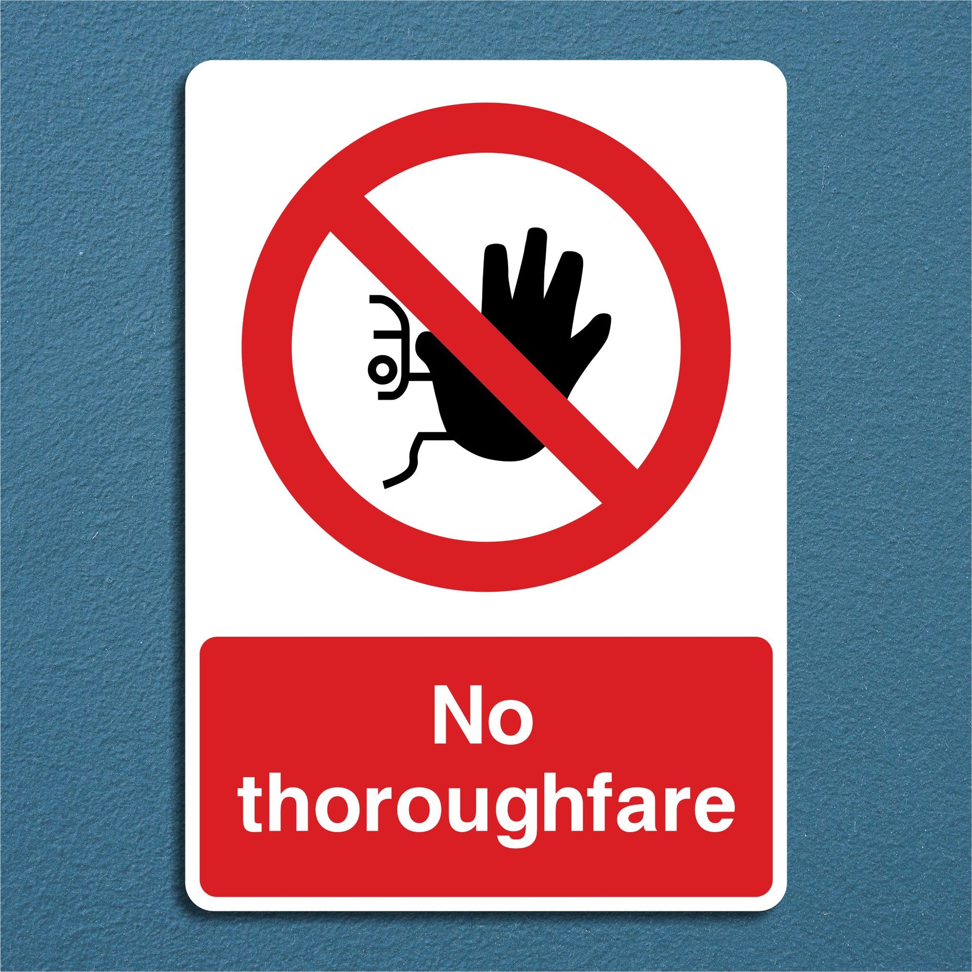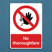 No Thoroughfare Signs are used to indicate that a route or passage is not open for public use or general access, and should not be used as a shortcut or transit path. They prevent people from entering areas that are private, restricted, or not intended for through traffic, such as service routes, work zones, or secure premises. By keeping pedestrians or vehicles out of potentially hazardous or controlled areas, the signs help avoid accidents and injuries. All our safety signs are compliant with BS EN ISO 7010 where applicable.