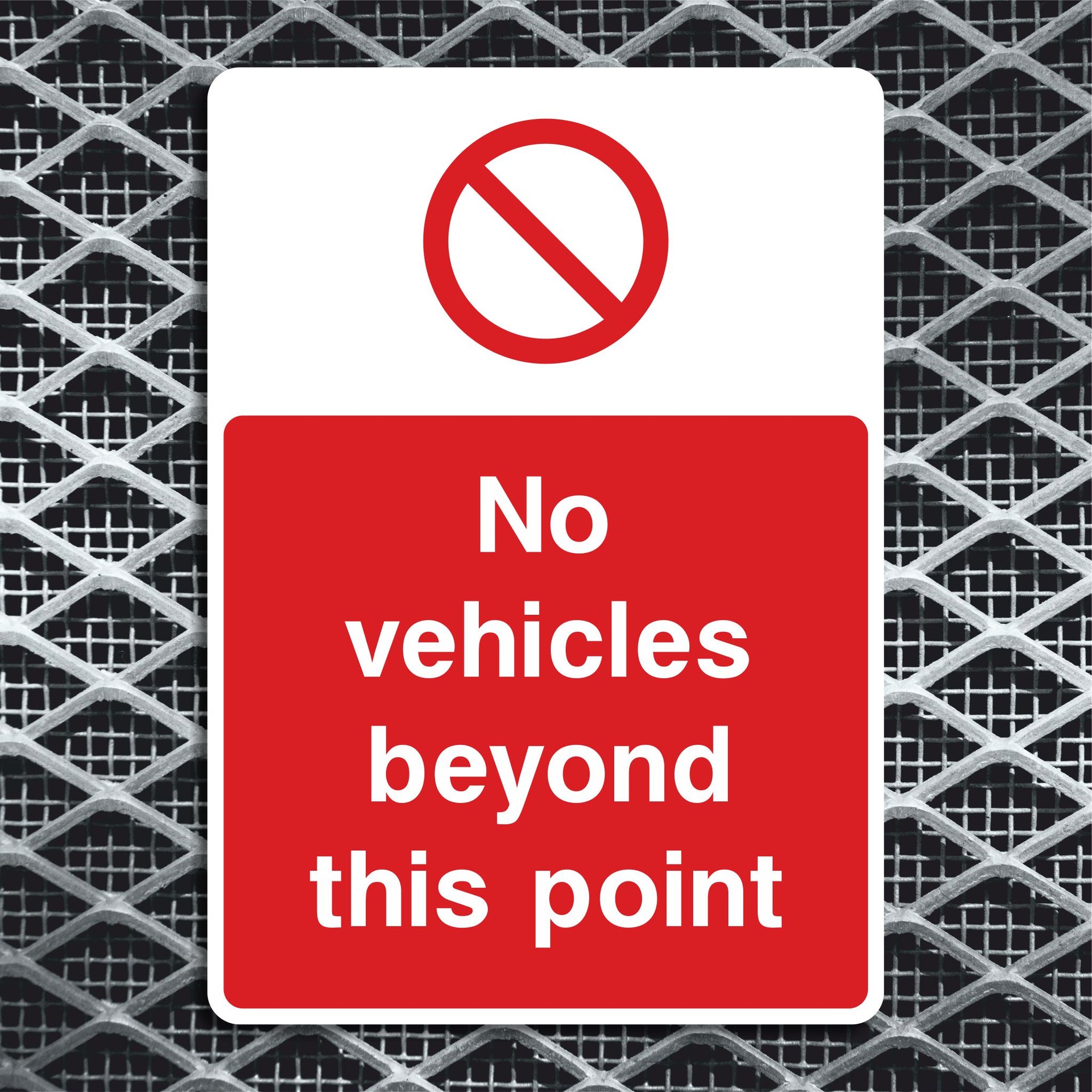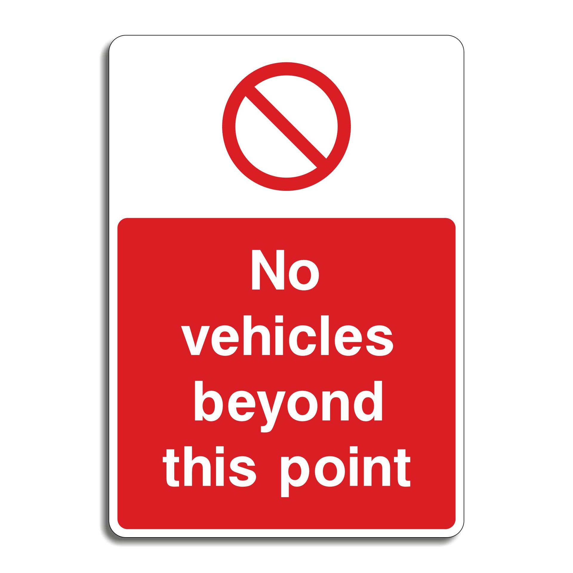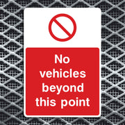 No Vehicles Beyond This Point Signs are used to prohibit all motorized vehicles from passing a designated boundary. They mark areas intended only for foot traffic, reducing the risk of accidents between vehicles and pedestrians. These signs help safeguard environments like parks, walkways, school zones, or maintenance zones that are not designed for vehicle access. All our safety signs are compliant with BS EN ISO 7010 where applicable.