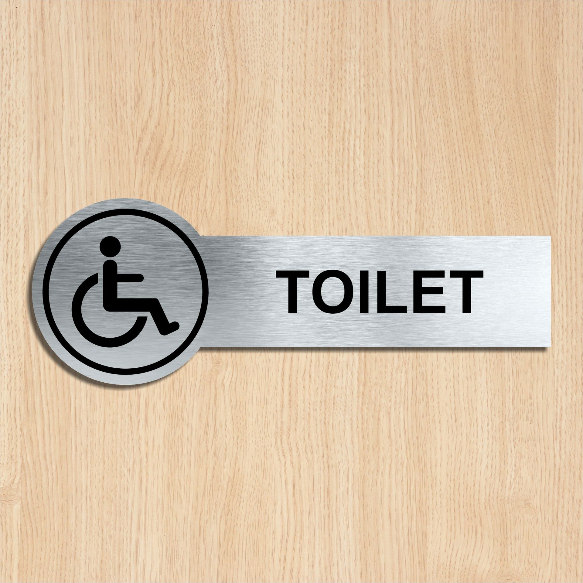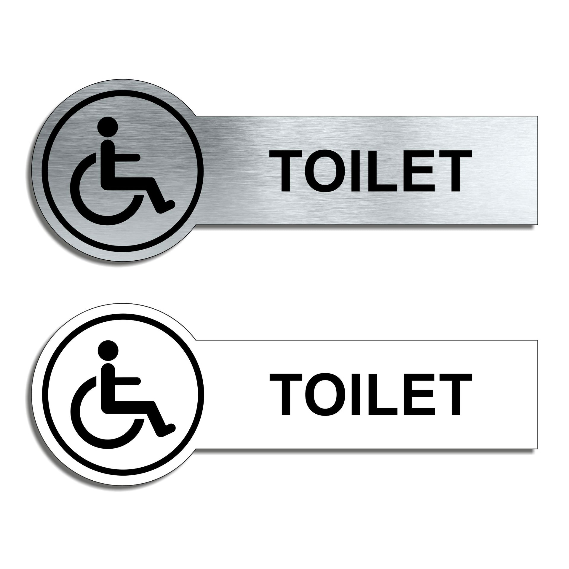 Our brushed aluminum Disabled toilet door signs are known for their contemporary appeal, giving a high-end look that is both sleek as well as being practical. The distinctive brushed aluminium texture creates a modern aesthetic that is perfect for businesses or organisations aiming to convey a sense of style and professionalism. The textured metallic finish adds a touch of luxury, making brushed aluminum door signs a popular choice for any location. Manufactured by us here in the UK using a high quality 3mm brushed silver aluminium composite sheet each door sign is suitable for either internal or external use. Our Crest door signs are precision cut to size and shape using one of our flat bed CNC routers and is then digitally printed directly to the surface using the very latest UV printing technology. This Crest door sign is also available in a 3mm bright white aluminium composite finish. These door signs are supplied with self adhesive pads to allow for easy installation.  We also offer a range of stylish screw fixings that are designed to compliment the finish of each sign. Due to the large selection of different sign designs to avoid drill holes in the actual image or text area we do not supply these signs with any pre-drilled holes.