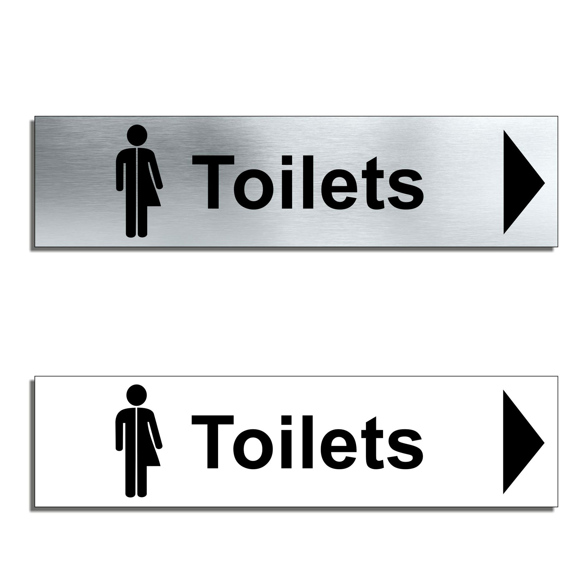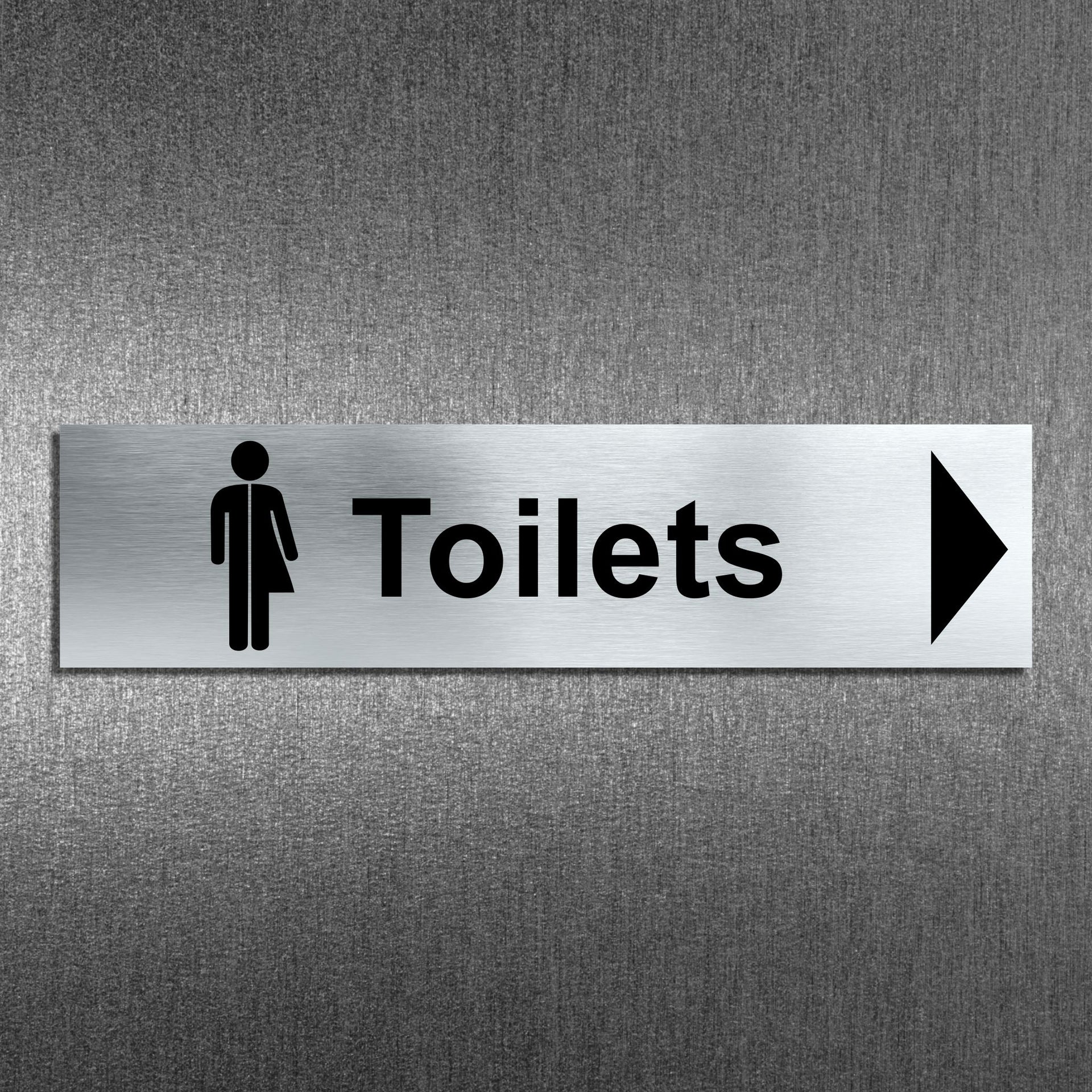 Enhance the look of your doors with our brushed aluminium Inclusive Toilet Door Signs. This particular sign has a right pointing directional arrow to help guide users. Brushed silver aluminum door signs are known for their contemporary appeal, giving a high-end look that is both sleek as well as being practical. The distinctive brushed aluminium texture creates a modern aesthetic that is perfect for businesses or organisations aiming to convey a sense of style and professionalism. The textured metallic finish adds a touch of luxury, making brushed aluminum door signs a popular choice for any location. Manufactured by us here in the UK using a high quality 3mm brushed silver aluminium composite sheet each door sign is suitable for either internal or external use. Our door signs are precision cut to size and shape using one of our flat bed CNC routers and is then digitally printed directly to the surface using the very latest UV printing technology. This door sign is also available in a 3mm bright white aluminium composite finish. These door signs are supplied with self adhesive pads to allow for easy installation. We also offer a range of stylish screw fixings that are designed to compliment the finish of each sign. Due to the large selection of different sign designs to avoid drill holes in the actual image or text area we do not supply these signs with any pre-drilled holes.