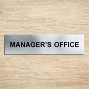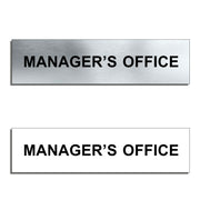 Enhance the look of your doors with our brushed aluminium Manager's Office Door Signs. Brushed silver aluminum door signs are known for their contemporary appeal, giving a high-end look that is both sleek as well as being practical. The distinctive brushed aluminium texture creates a modern aesthetic that is perfect for businesses or organisations aiming to convey a sense of style and professionalism. The textured metallic finish adds a touch of luxury, making brushed aluminum door signs a popular choice for any location. Manufactured by us here in the UK using a high quality 3mm brushed silver aluminium composite sheet each door sign is suitable for either internal or external use. Our door signs are precision cut to size and shape using one of our flat bed CNC routers and is then digitally printed directly to the surface using the very latest UV printing technology. This door sign is also available in a 3mm bright white aluminium composite finish. These door signs are supplied with self adhesive pads to allow for easy installation. We also offer a range of stylish screw fixings that are designed to compliment the finish of each sign. Due to the large selection of different sign designs to avoid drill holes in the actual image or text area we do not supply these signs with any pre-drilled holes.