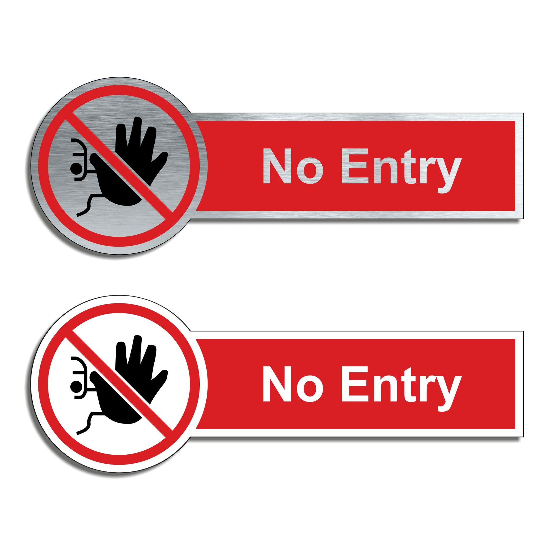 Our brushed aluminum No Entry Door Signs are known for their contemporary appeal, giving a high-end look that is both sleek as well as being practical. The distinctive brushed aluminium texture creates a modern aesthetic that is perfect for businesses or organisations aiming to convey a sense of style and professionalism. The textured metallic finish adds a touch of luxury, making brushed aluminum door signs a popular choice for any location. Manufactured by us here in the UK using a high quality 3mm brushed silver aluminium composite sheet each door sign is suitable for either internal or external use. Our Crest door signs are precision cut to size and shape using one of our flat bed CNC routers and is then digitally printed directly to the surface using the very latest UV printing technology. This Crest door sign is also available in a 3mm bright white aluminium composite finish. These door signs are supplied with self adhesive pads to allow for easy installation. We also offer a range of stylish screw fixings that are designed to compliment the finish of each sign. Due to the large selection of different sign designs to avoid drill holes in the actual image or text area we do not supply these signs with any pre-drilled holes.
