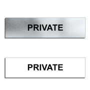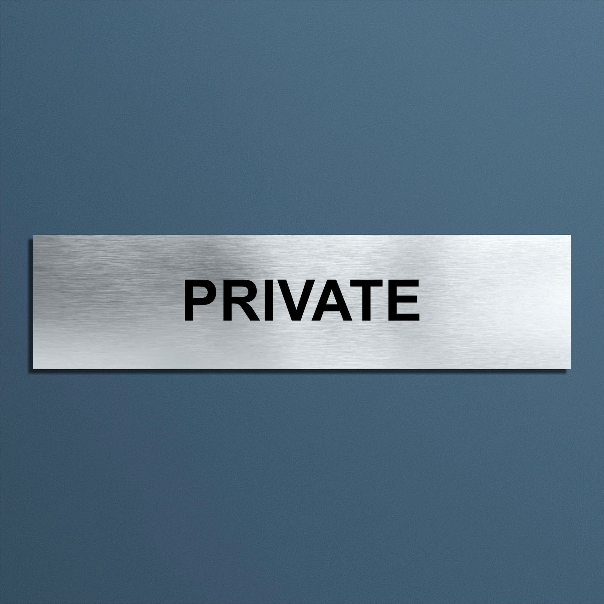 Enhance the look of your doors with our brushed aluminium Private Door Signs. Brushed silver aluminum door signs are known for their contemporary appeal, giving a high-end look that is both sleek as well as being practical. The distinctive brushed aluminium texture creates a modern aesthetic that is perfect for businesses or organisations aiming to convey a sense of style and professionalism. The textured metallic finish adds a touch of luxury, making brushed aluminum door signs a popular choice for any location. Manufactured by us here in the UK using a high quality 3mm brushed silver aluminium composite sheet each door sign is suitable for either internal or external use. Our door signs are precision cut to size and shape using one of our flat bed CNC routers and is then digitally printed directly to the surface using the very latest UV printing technology. This door sign is also available in a 3mm bright white aluminium composite finish. These door signs are supplied with self adhesive pads to allow for easy installation. We also offer a range of stylish screw fixings that are designed to compliment the finish of each sign. Due to the large selection of different sign designs to avoid drill holes in the actual image or text area we do not supply these signs with any pre-drilled holes.