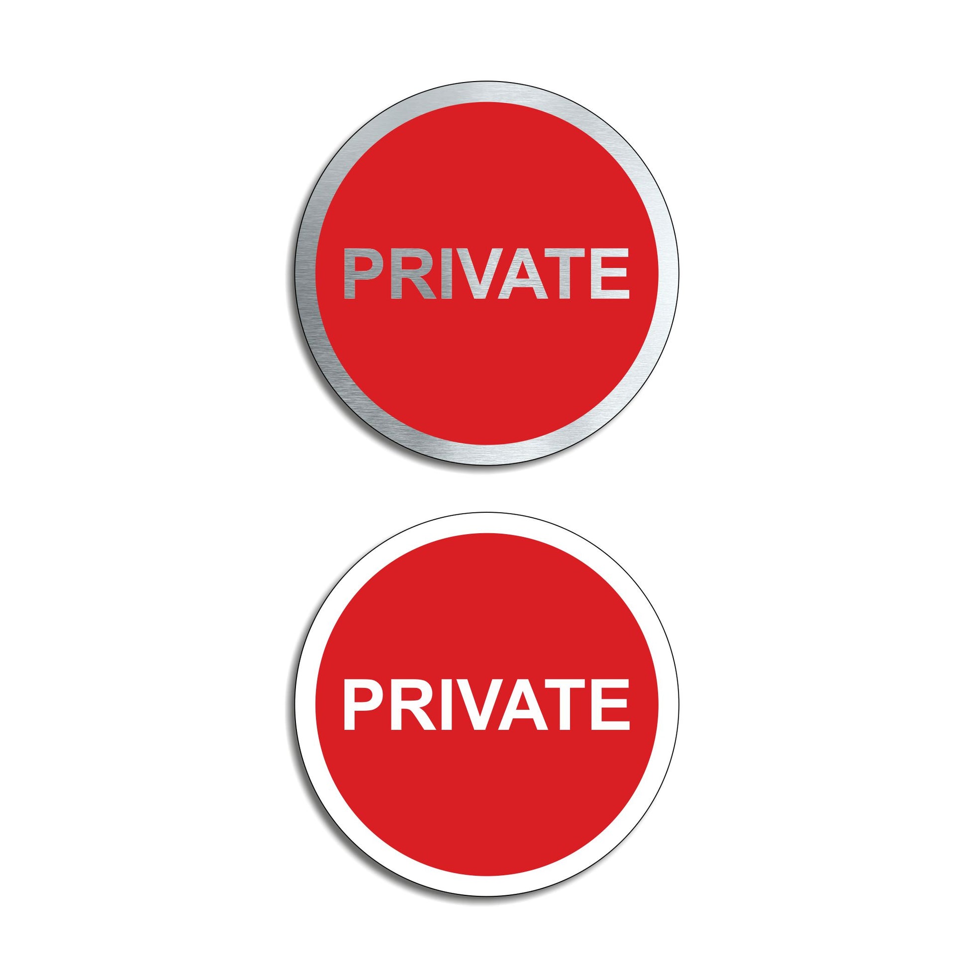 Enhance the look of your doors with our circular brushed aluminium Private Door Signs. Brushed silver aluminum door signs are known for their contemporary appeal, giving a high-end look that is both sleek as well as being practical. The distinctive brushed aluminium texture creates a modern aesthetic that is perfect for businesses or organisations aiming to convey a sense of style and professionalism. The textured metallic finish adds a touch of luxury, making brushed aluminum door signs a popular choice for any location. Manufactured by us here in the UK using a high quality 3mm brushed silver aluminium composite sheet each door sign is suitable for either internal or external use. Our door signs are precision cut to size and shape using one of our flat bed CNC routers and is then digitally printed directly to the surface using the very latest UV printing technology. This door sign is also available in a 3mm bright white aluminium composite finish. These door signs are supplied with self adhesive pads to allow for easy installation. We also offer a range of stylish screw fixings that are designed to compliment the finish of each sign. Due to the large selection of different sign designs to avoid drill holes in the actual image or text area we do not supply these signs with any pre-drilled holes.