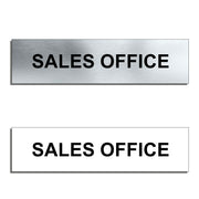 Enhance the look of your doors with our brushed aluminium Sales Office Door Signs. Brushed silver aluminum door signs are known for their contemporary appeal, giving a high-end look that is both sleek as well as being practical. The distinctive brushed aluminium texture creates a modern aesthetic that is perfect for businesses or organisations aiming to convey a sense of style and professionalism. The textured metallic finish adds a touch of luxury, making brushed aluminum door signs a popular choice for any location. Manufactured by us here in the UK using a high quality 3mm brushed silver aluminium composite sheet each door sign is suitable for either internal or external use. Our door signs are precision cut to size and shape using one of our flat bed CNC routers and is then digitally printed directly to the surface using the very latest UV printing technology. This door sign is also available in a 3mm bright white aluminium composite finish. These door signs are supplied with self adhesive pads to allow for easy installation. We also offer a range of stylish screw fixings that are designed to compliment the finish of each sign. Due to the large selection of different sign designs to avoid drill holes in the actual image or text area we do not supply these signs with any pre-drilled holes.